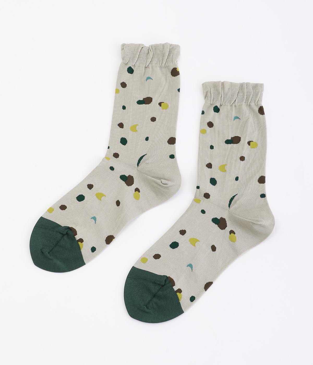 コットンウールケーブルバイカラーソックスグレー/グリーン