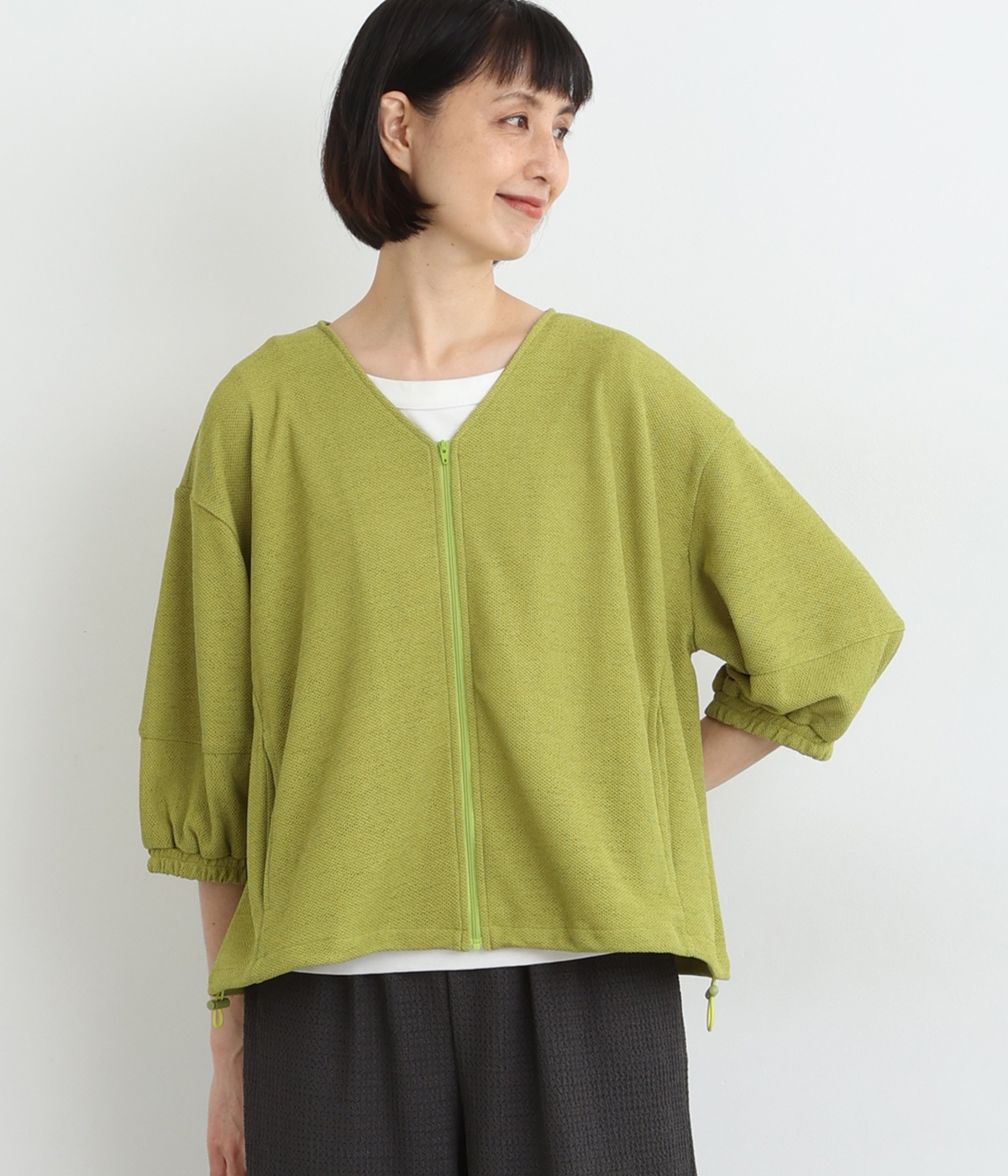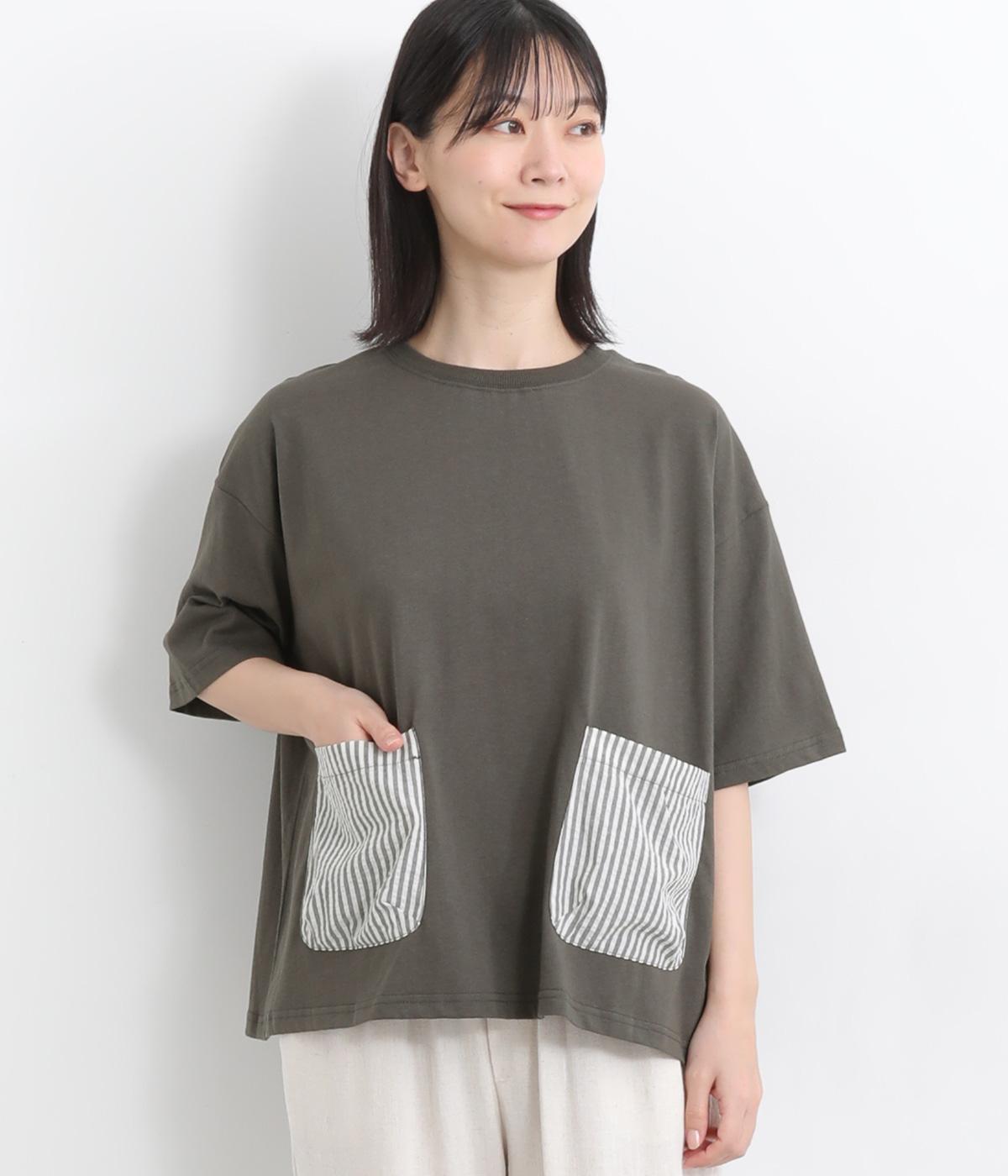裾スリットTトレーナーカーキ