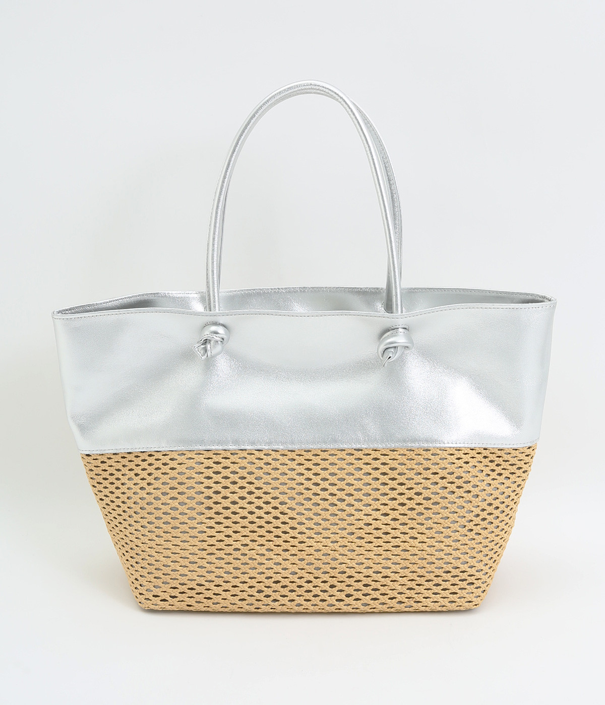 牛革メッシュ編みトートLシルバー