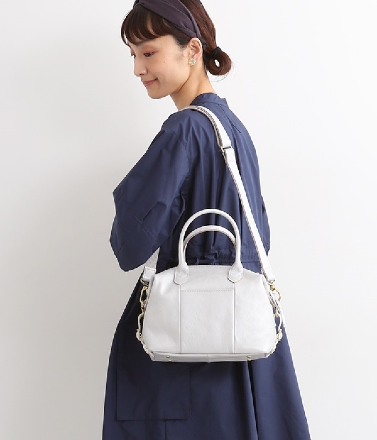 キャンバス×牛革 トリミング2wayトート Sシルバー