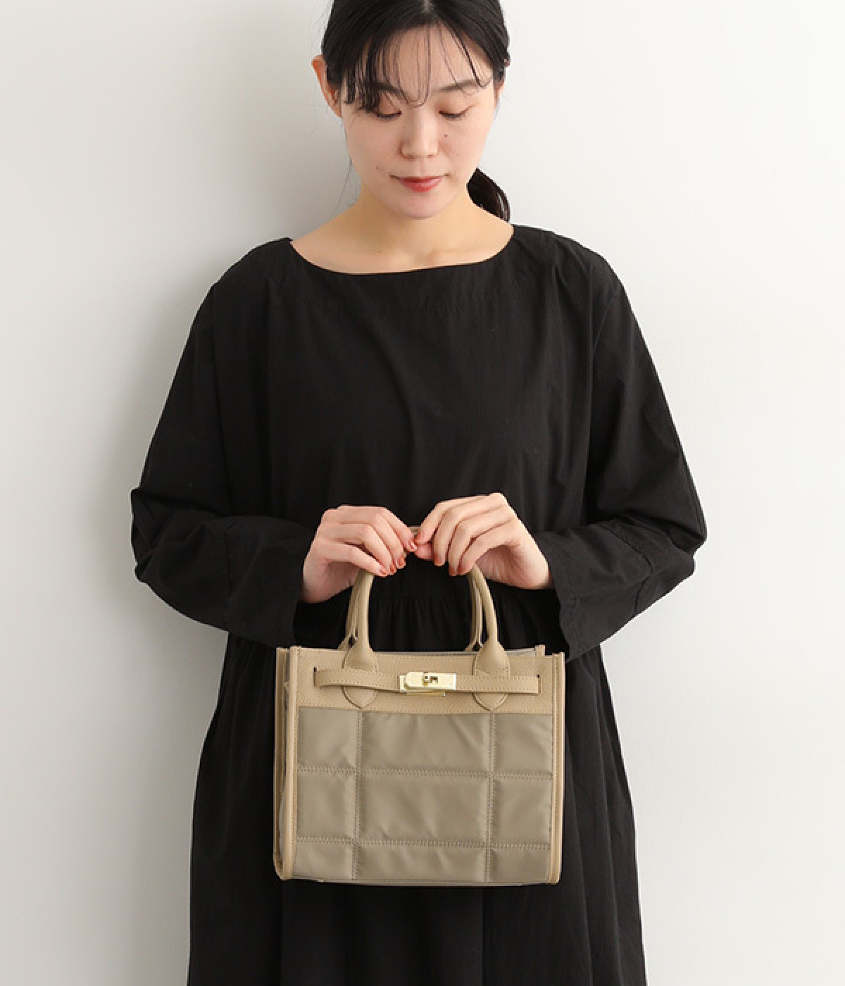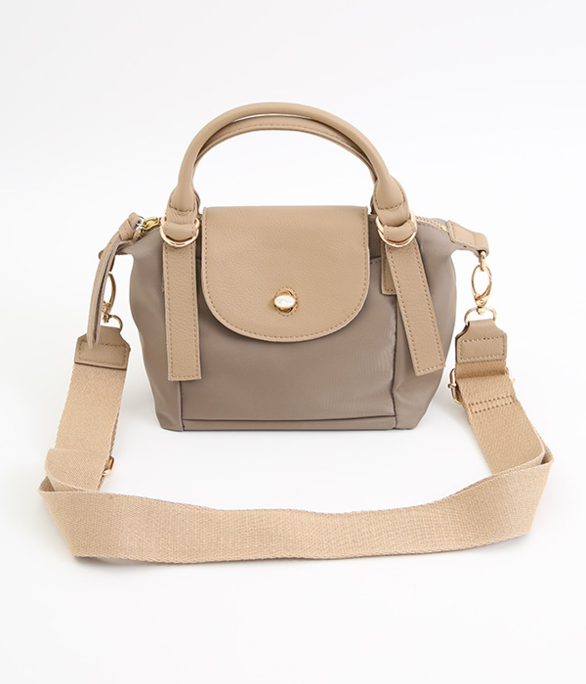 ナイロンドット刺繍 牛革2WAYトートライトグレー