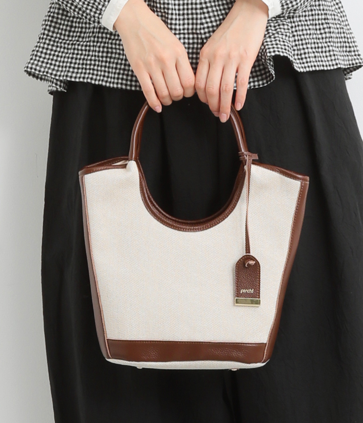 キャンバス×牛革 トリミング2wayトート Sブラウン