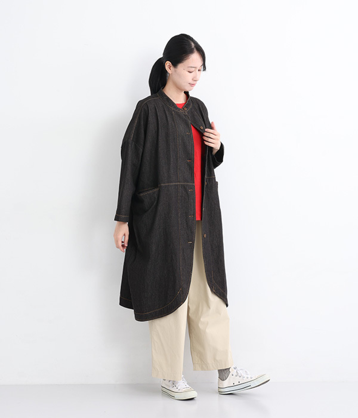やわらかデニムロングコート風ワンピースブラック