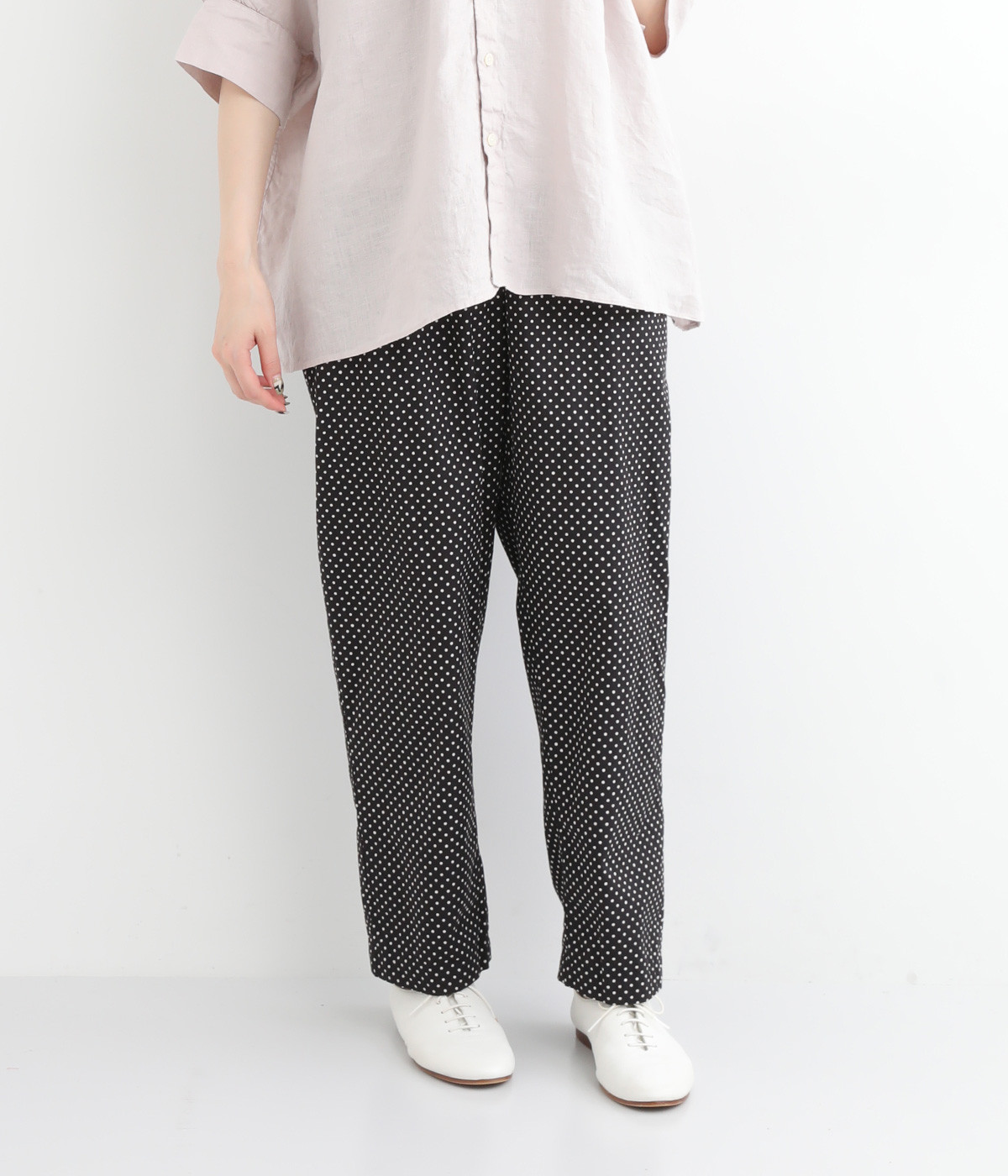 ヴィンテージ加工鳥プリントピンタックワンピースブラック×ホワイト
