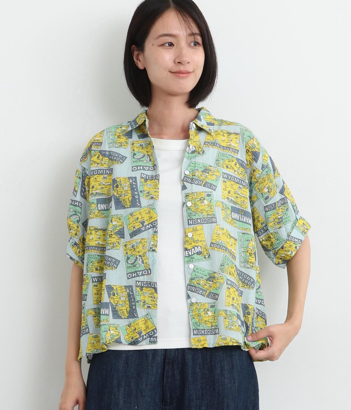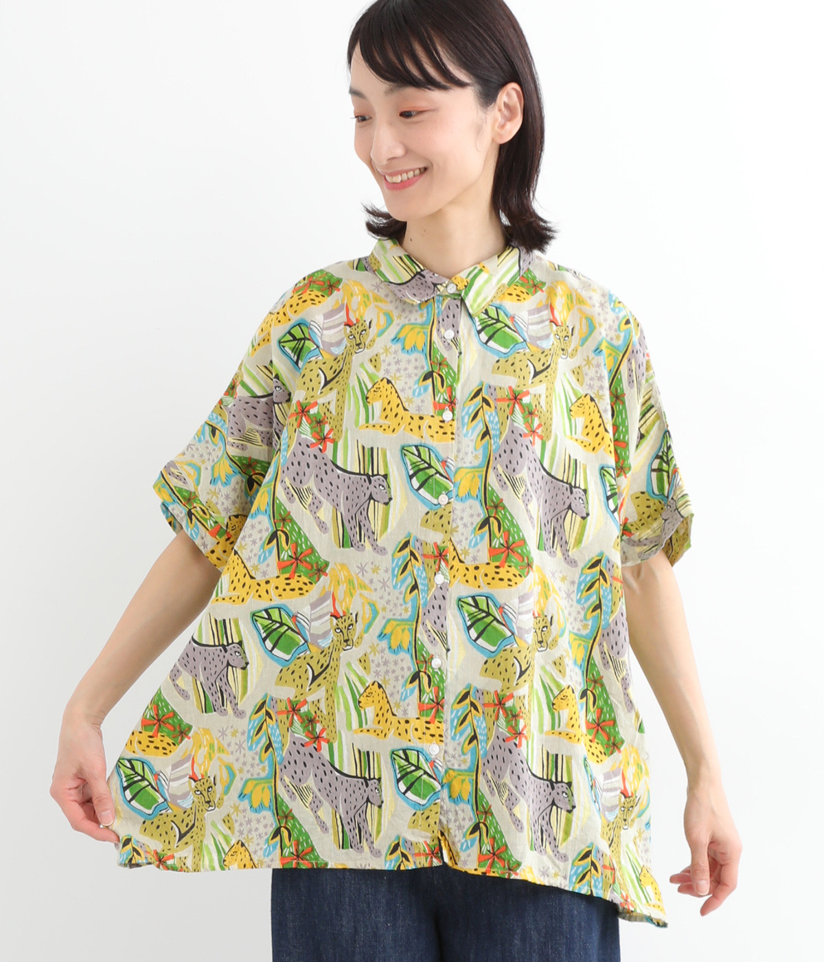 ヴィンテージ加工大花プリントレギュラーシャツホワイト