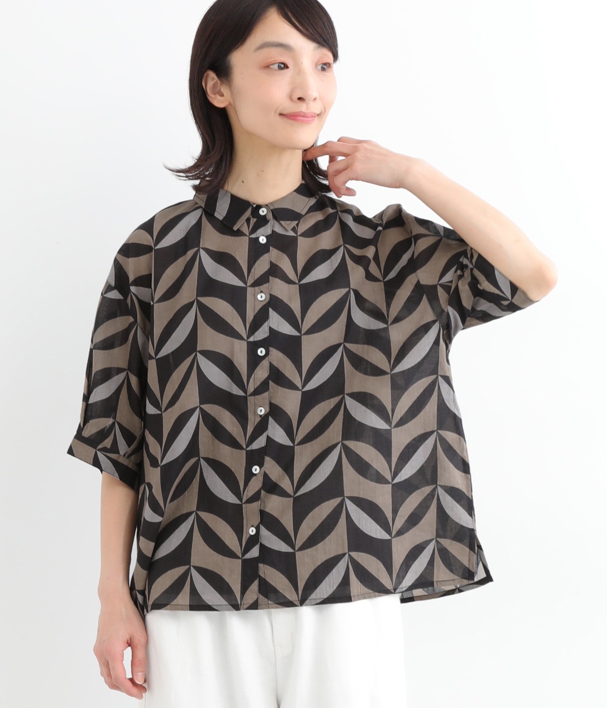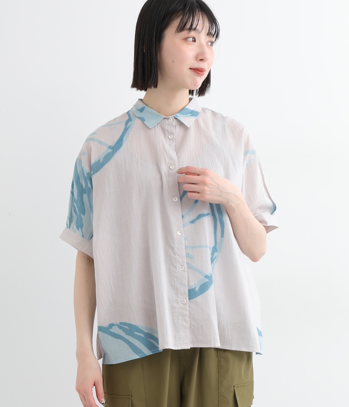 ヴィンテージ加工大花プリントレギュラーシャツグレー