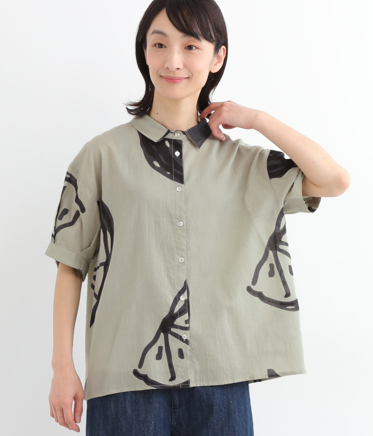 ヴィンテージ加工鳥プリントレギュラーシャツグレイ