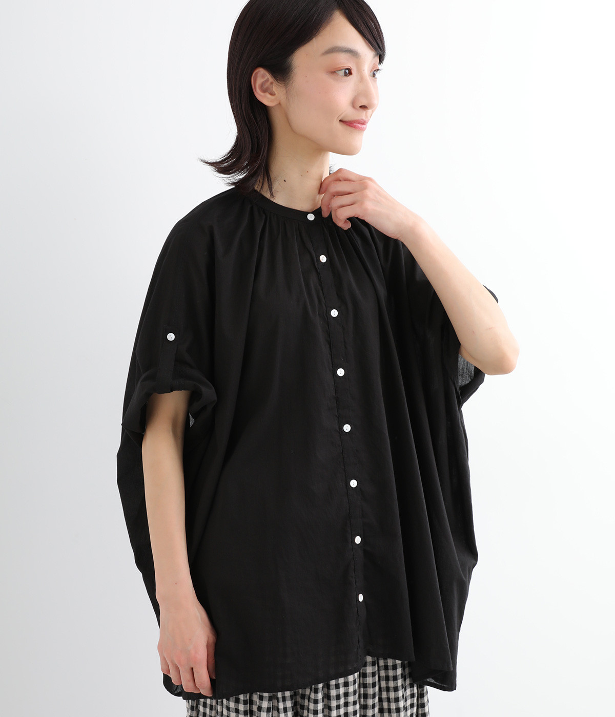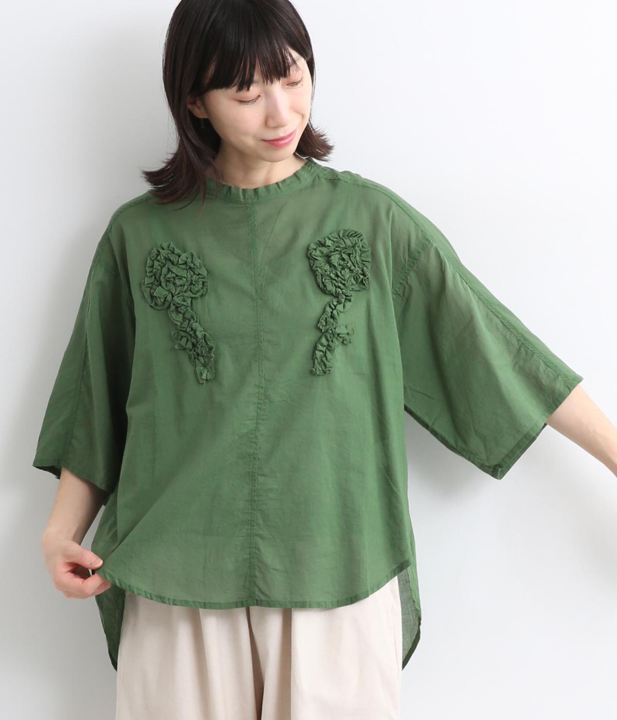 ヴィンテージ加工大花プリントスタンドシャツホワイト