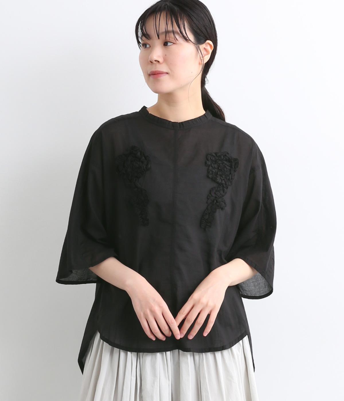 ヴィンテージ加工大花プリントスタンドシャツネイビー