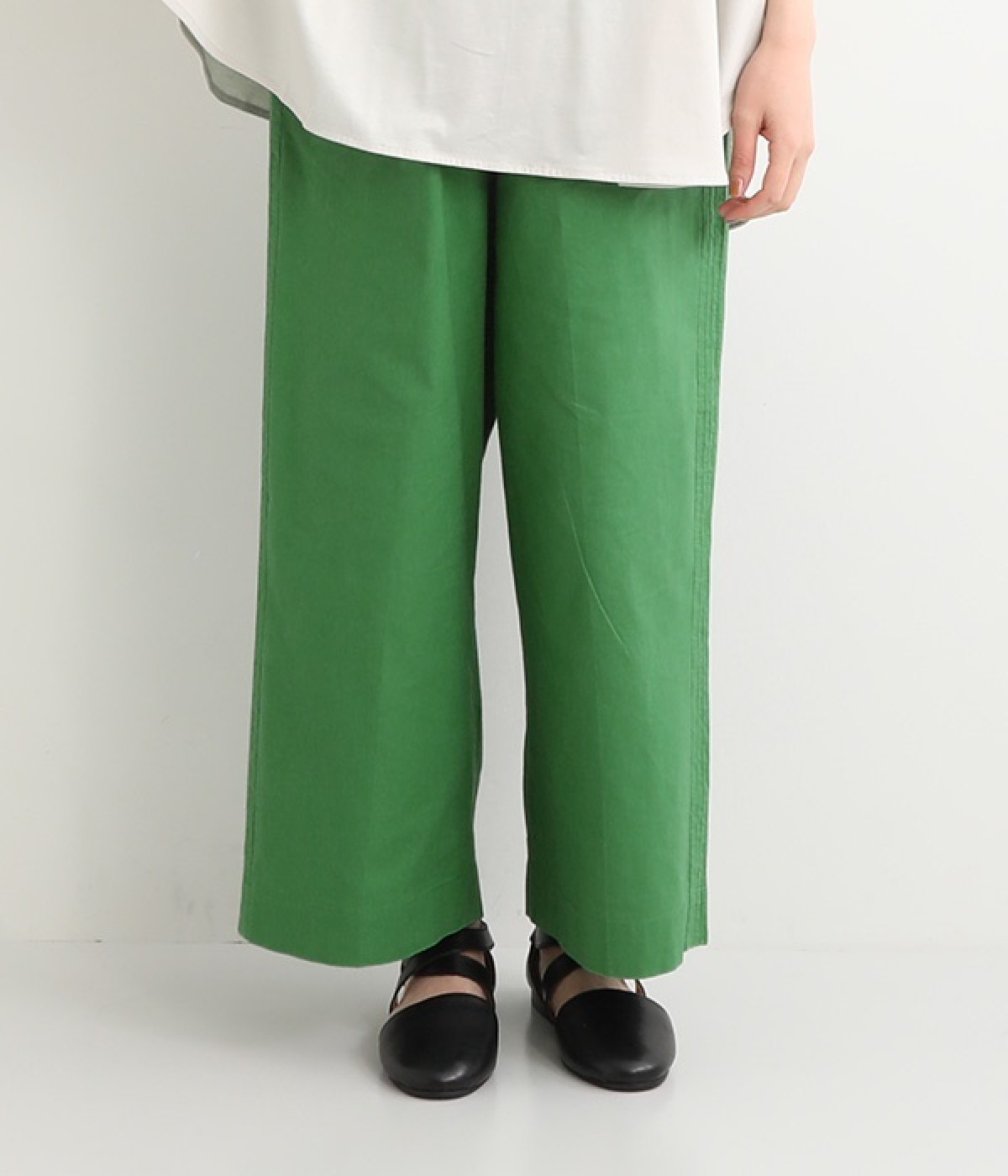 コットンリネンアムンゼンパネルチェックパンツグリーン