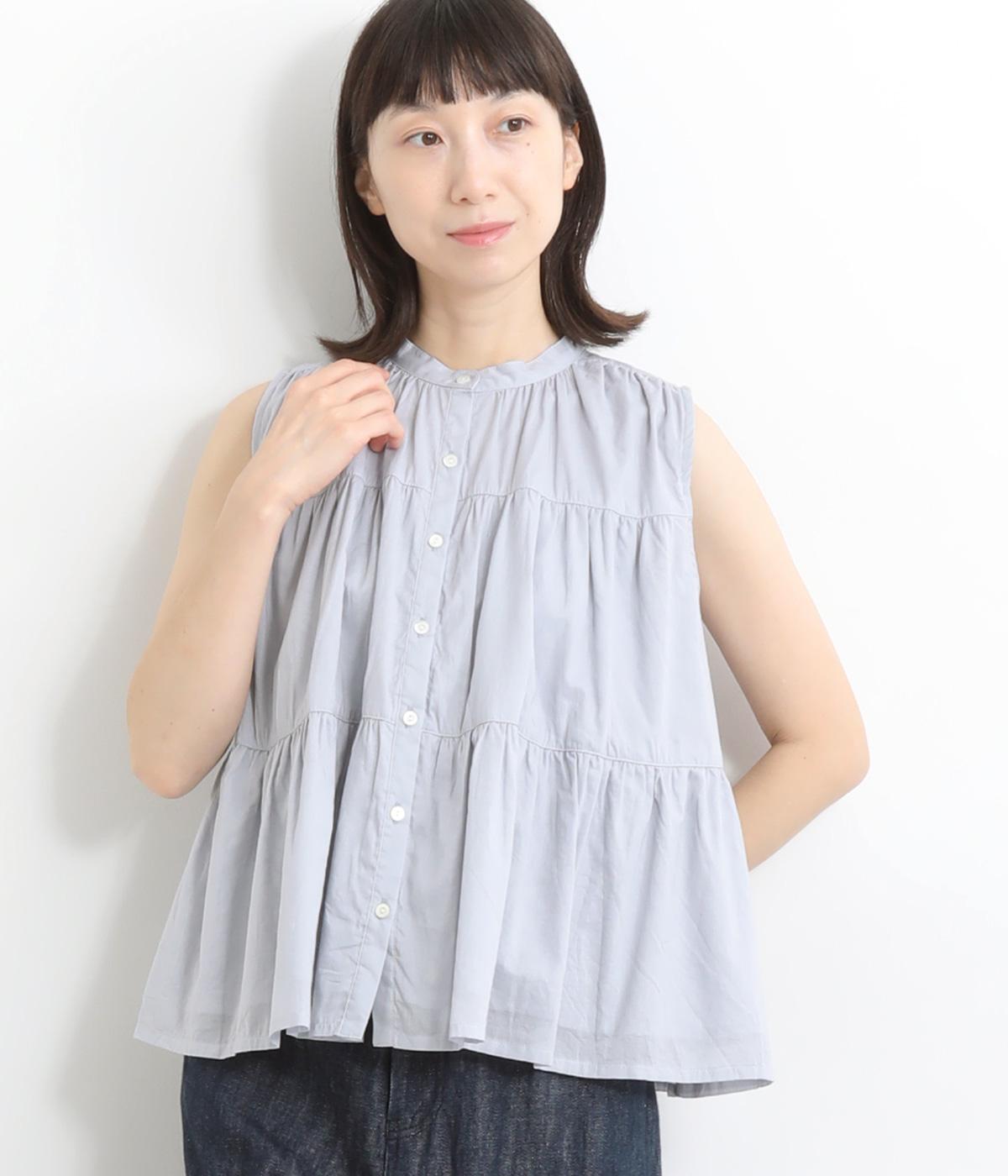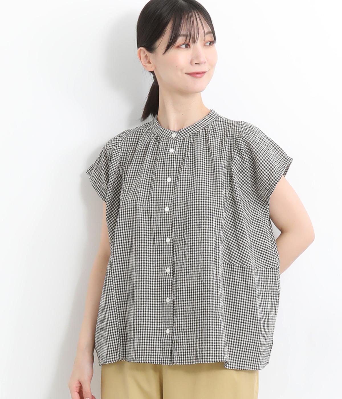 コットンブロードギンガムちび襟ブラウスグレー