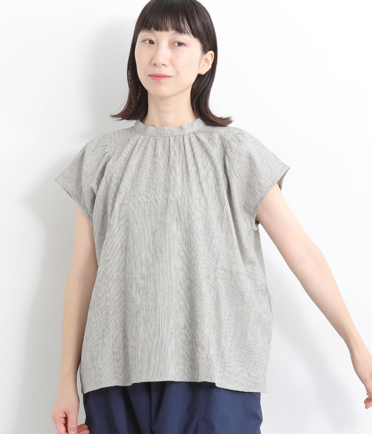 リネンコットンシーチング後Dカン付きプルオーバーグレー