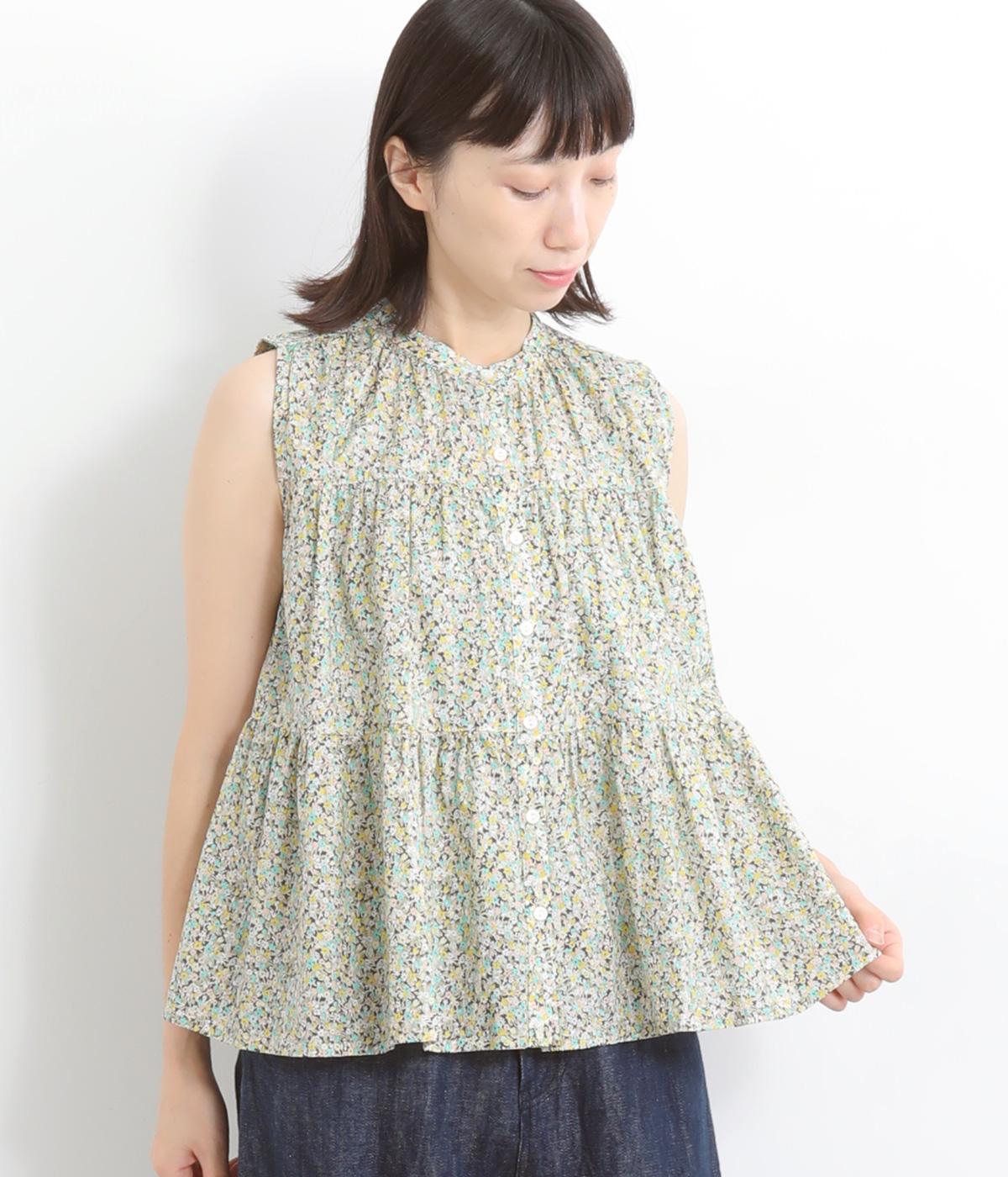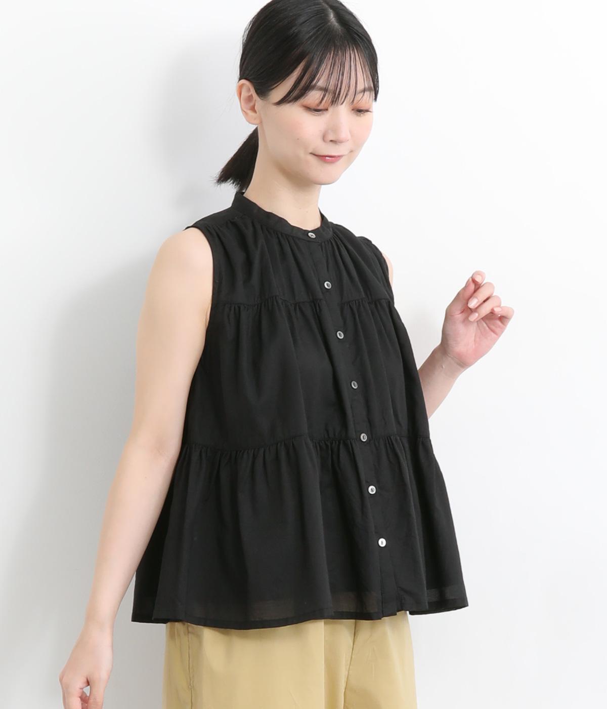 レーヨンテンセルポリパウダーポプリン襟ギャザー2wayブラウスブラック