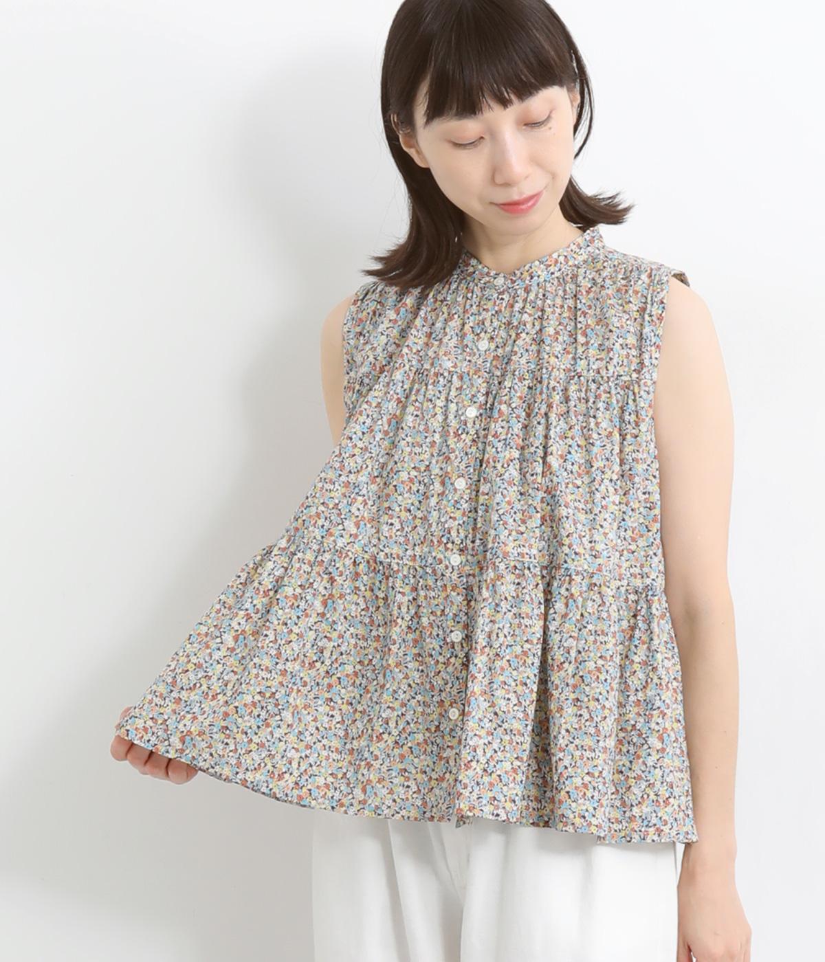 レーヨンテンセルポリパウダーポプリン襟ギャザー2wayブラウスオフホワイト