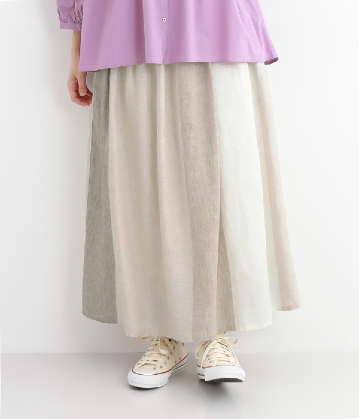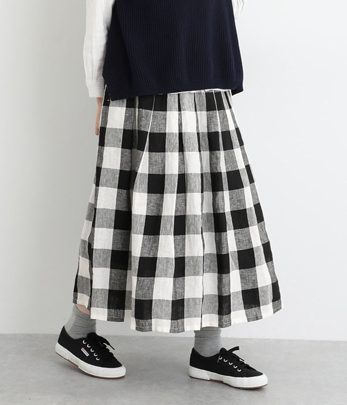 コットンリネンチェック ポケットギャザースカートギンガムチェック