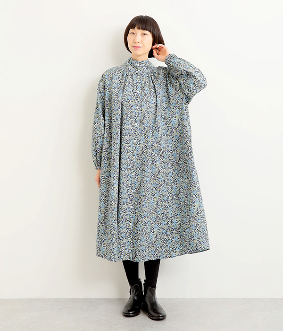リバティファブリックスフラワープリントワンピースドレスネイビー
