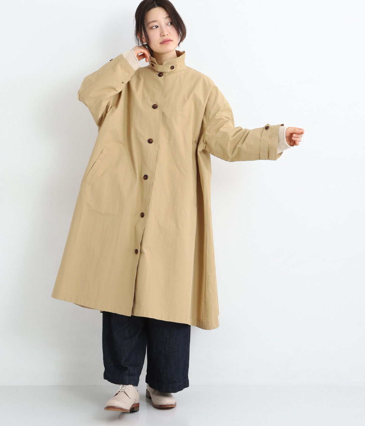 コットンリネン混合 比翼前立てラウンドカラーコートナチュラル