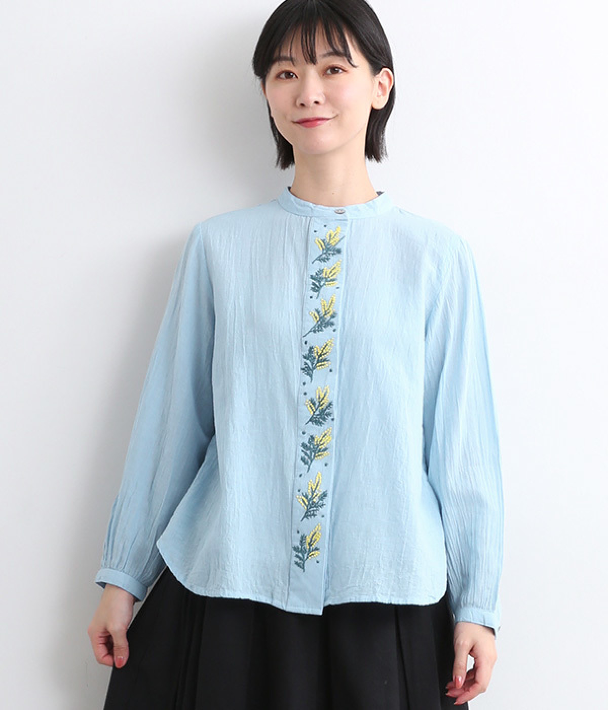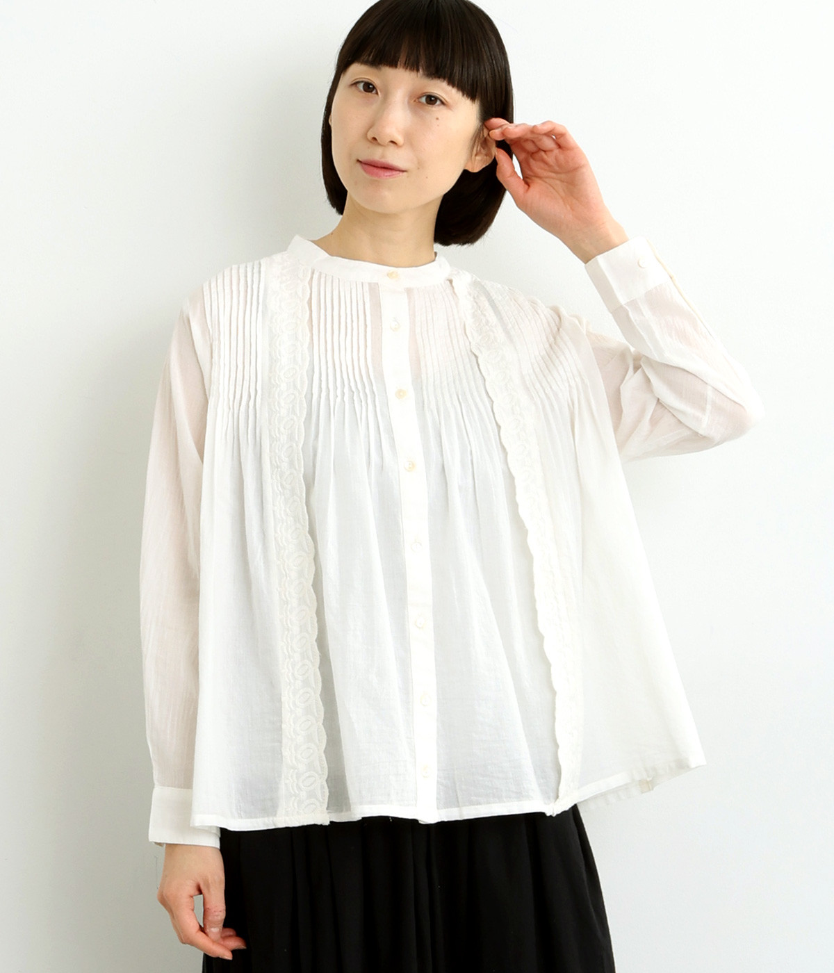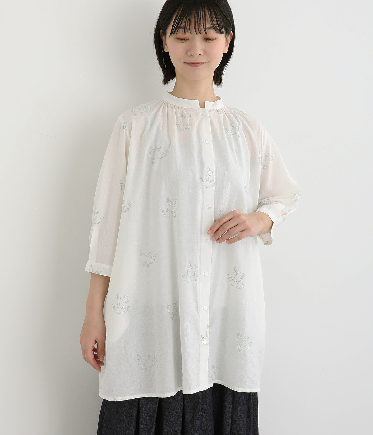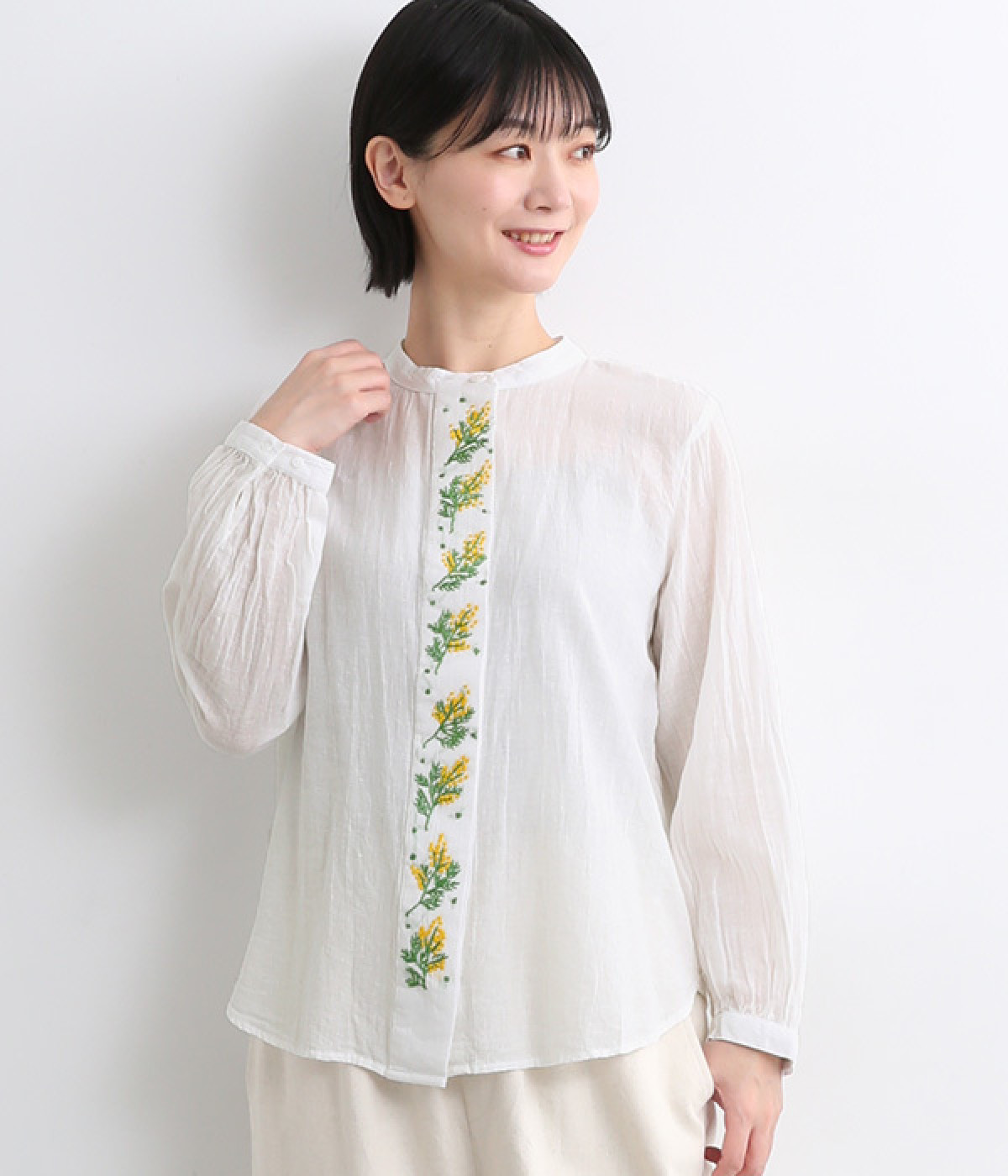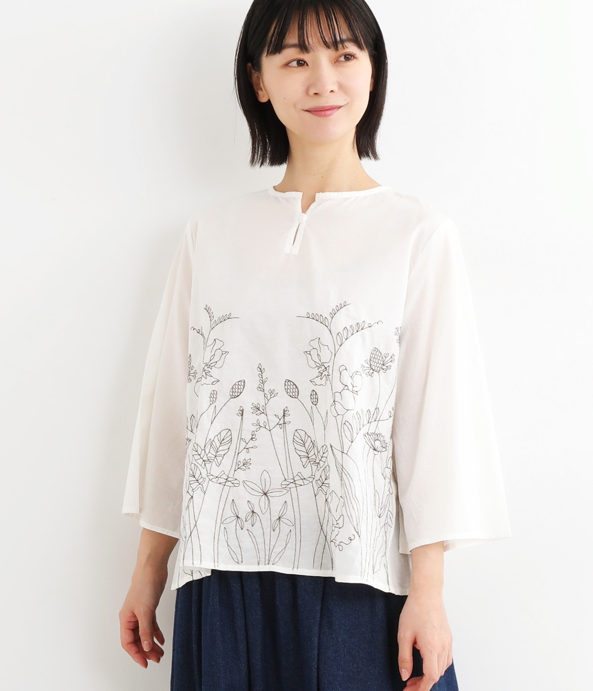CAT刺繍コットンリネン2wayブラウスホワイト