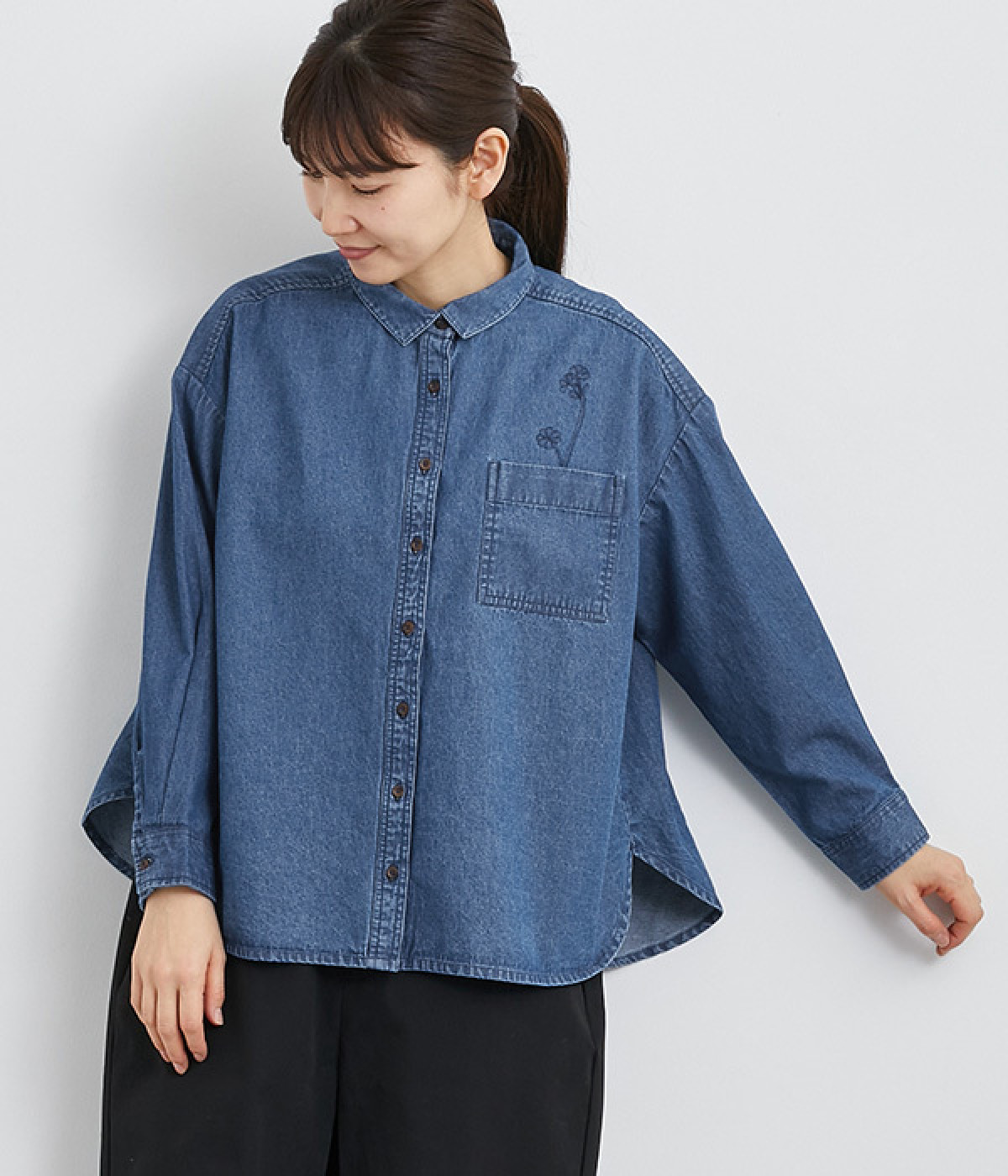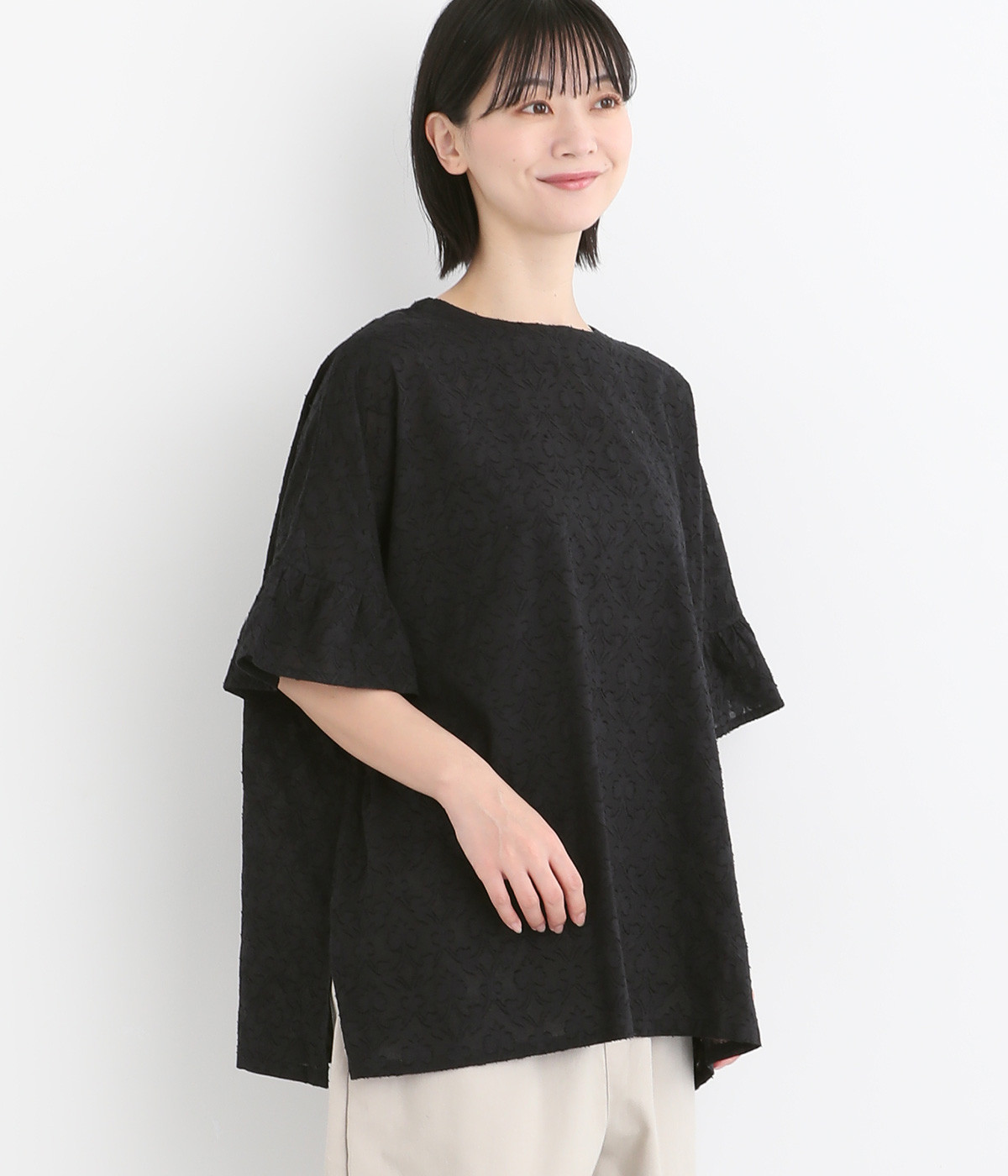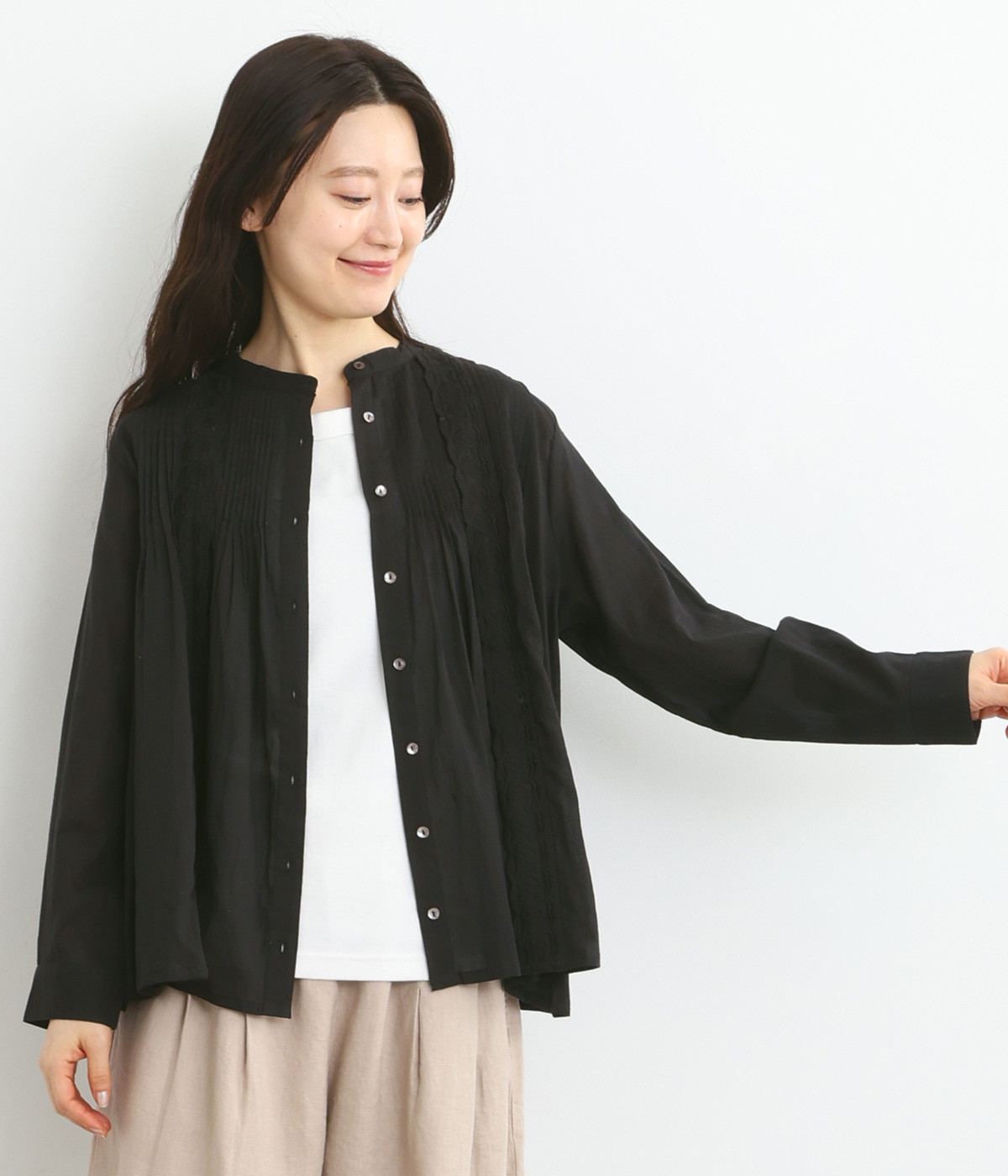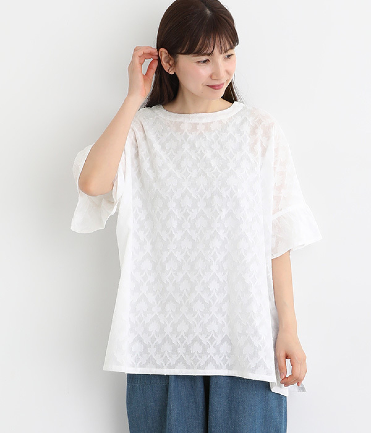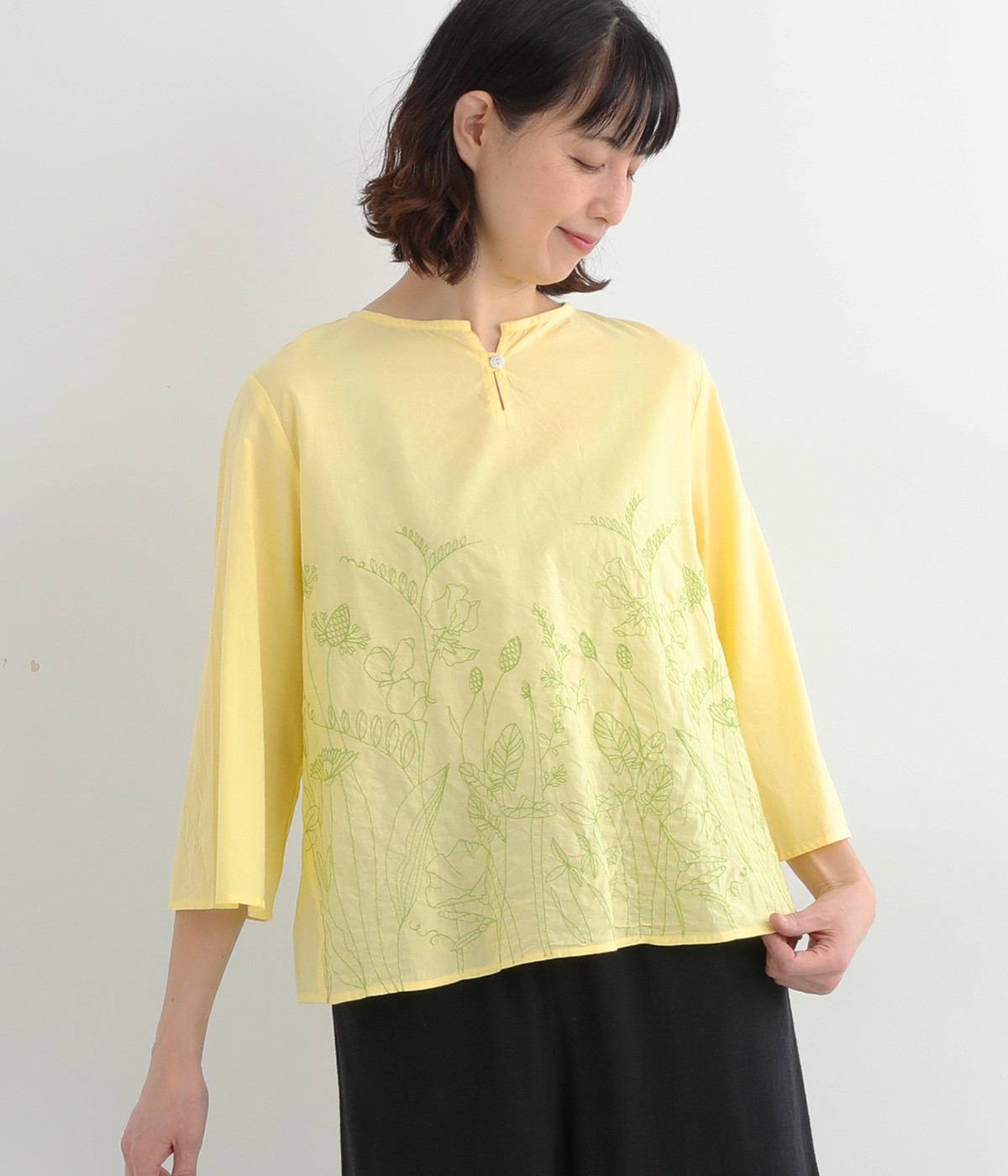 CAT刺繍コットンリネン2wayブラウスホワイト
