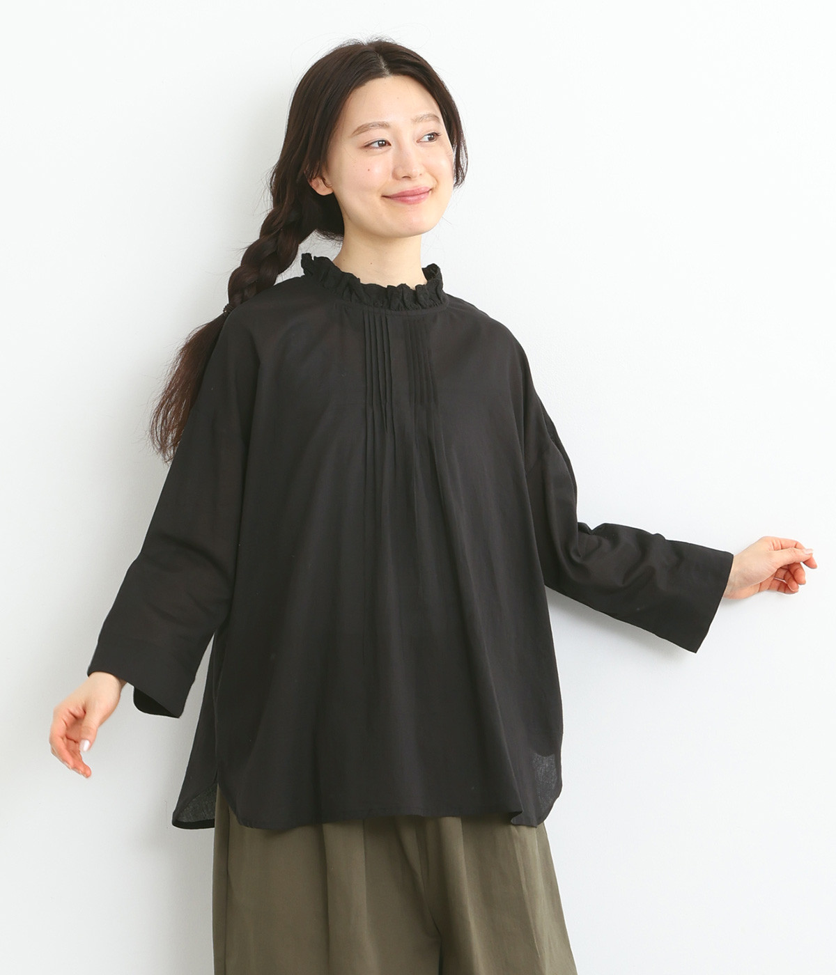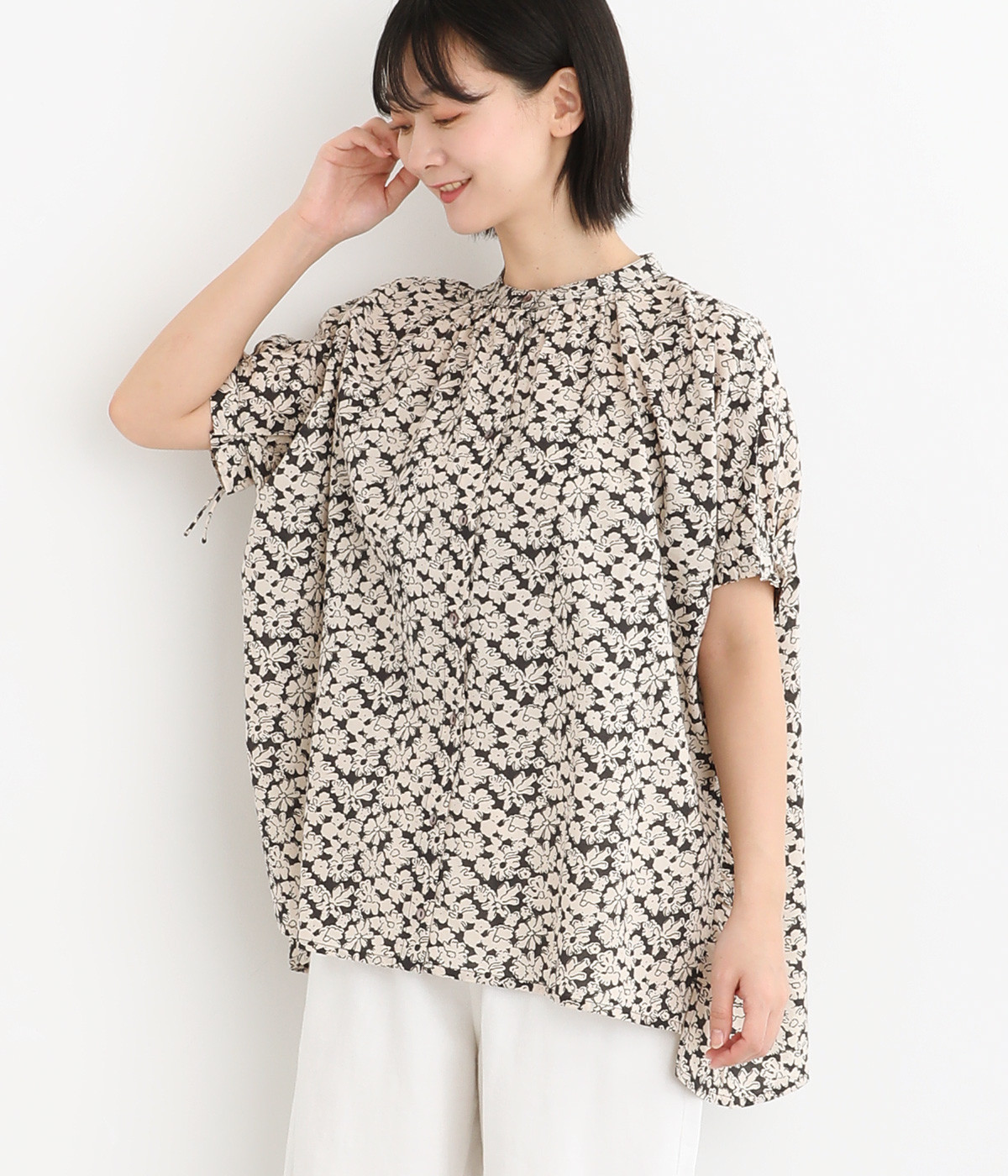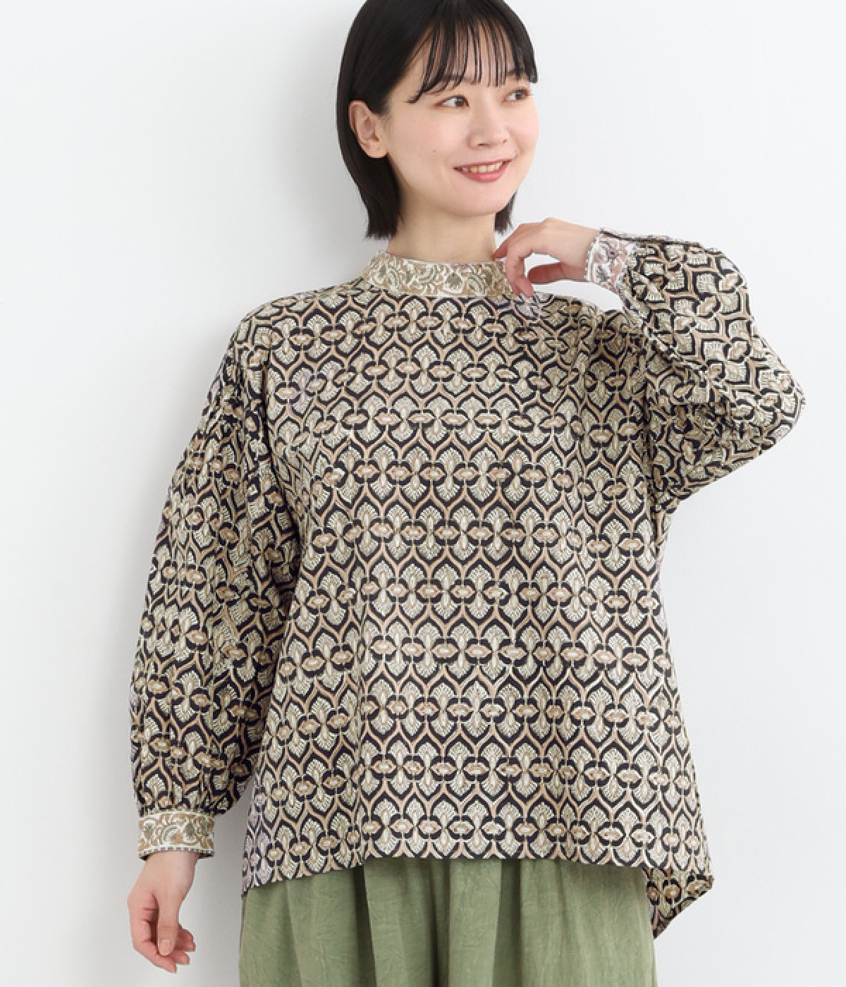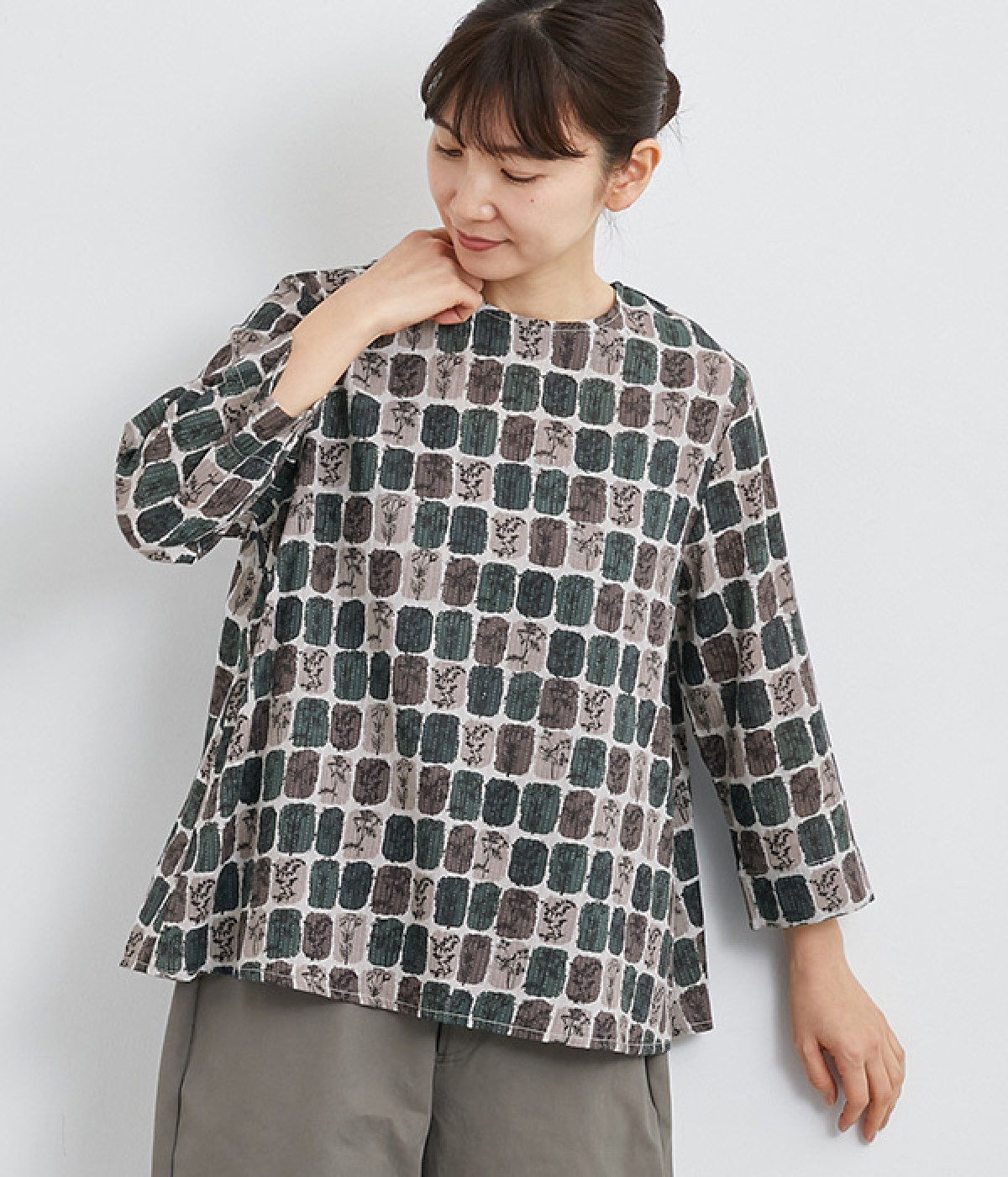 IROIROブロックプリント起毛コットン2wayブラウスチャコール