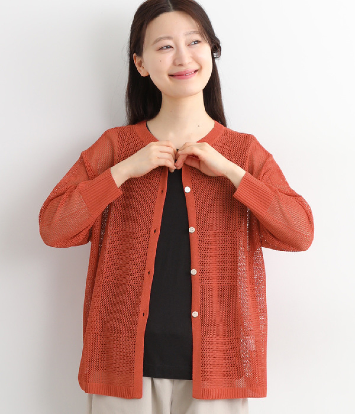かのこ編み再生ポリエステルニット2wayベストブラウン