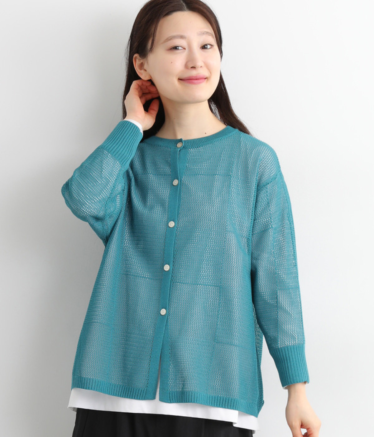 かのこ編み再生ポリエステルニット2wayベストブルー