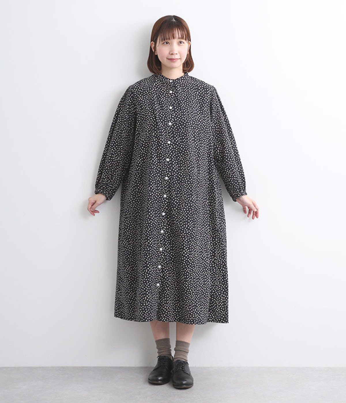 IROIROブロックプリント起毛コットン前開ワンピースチャコール