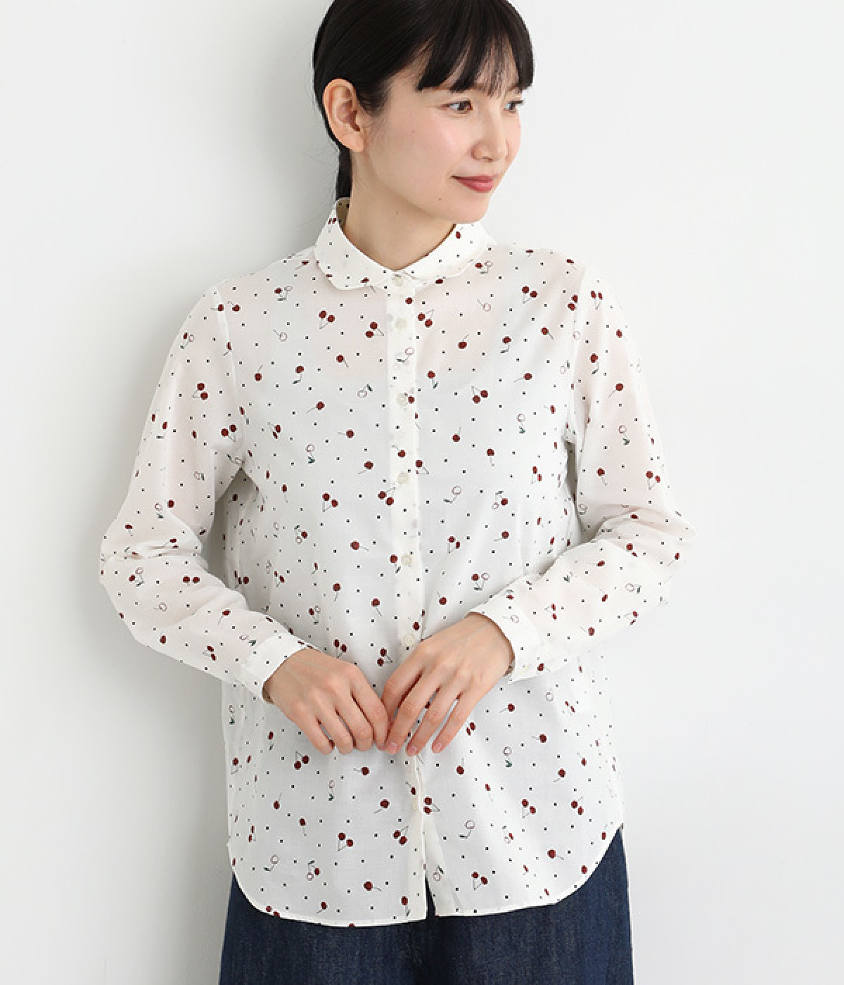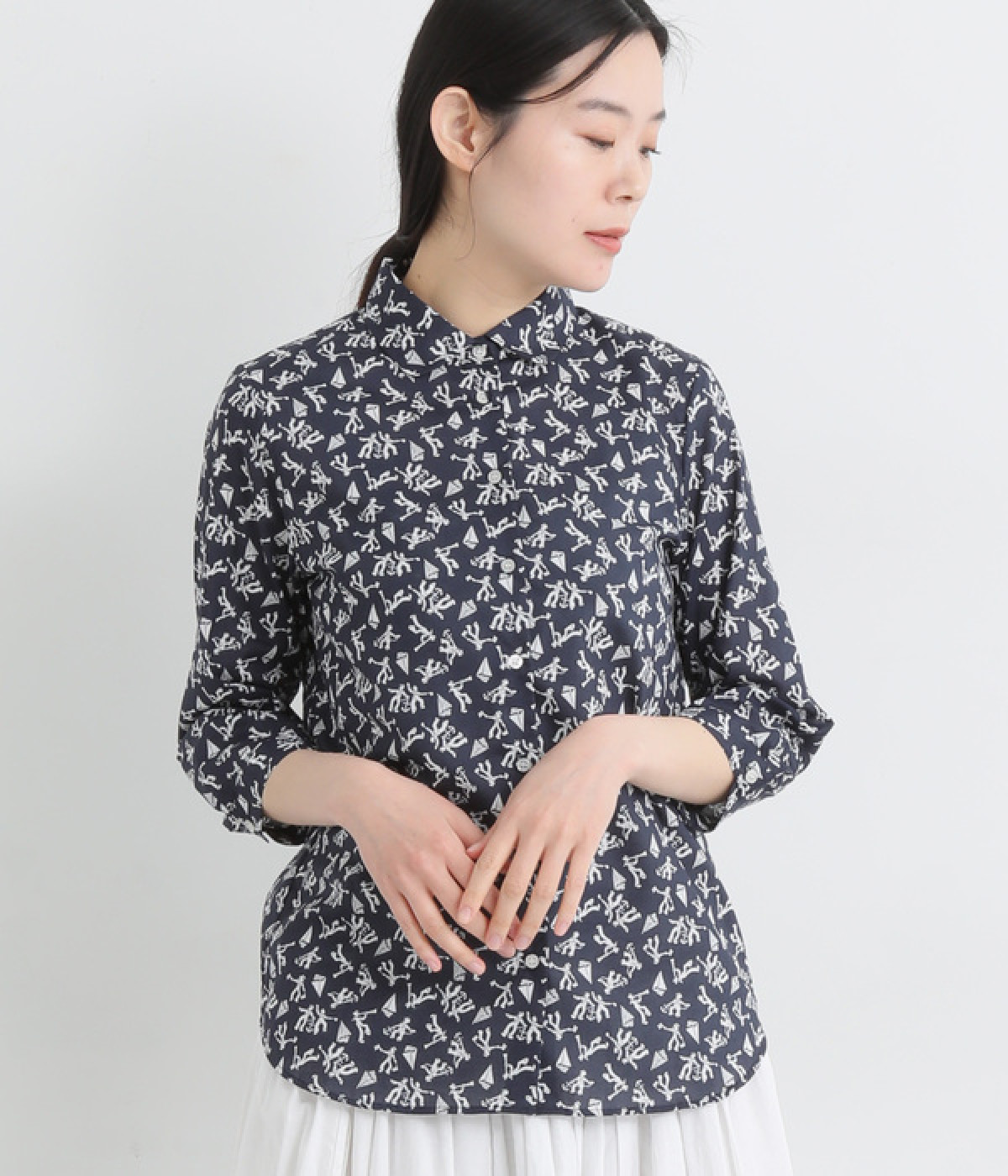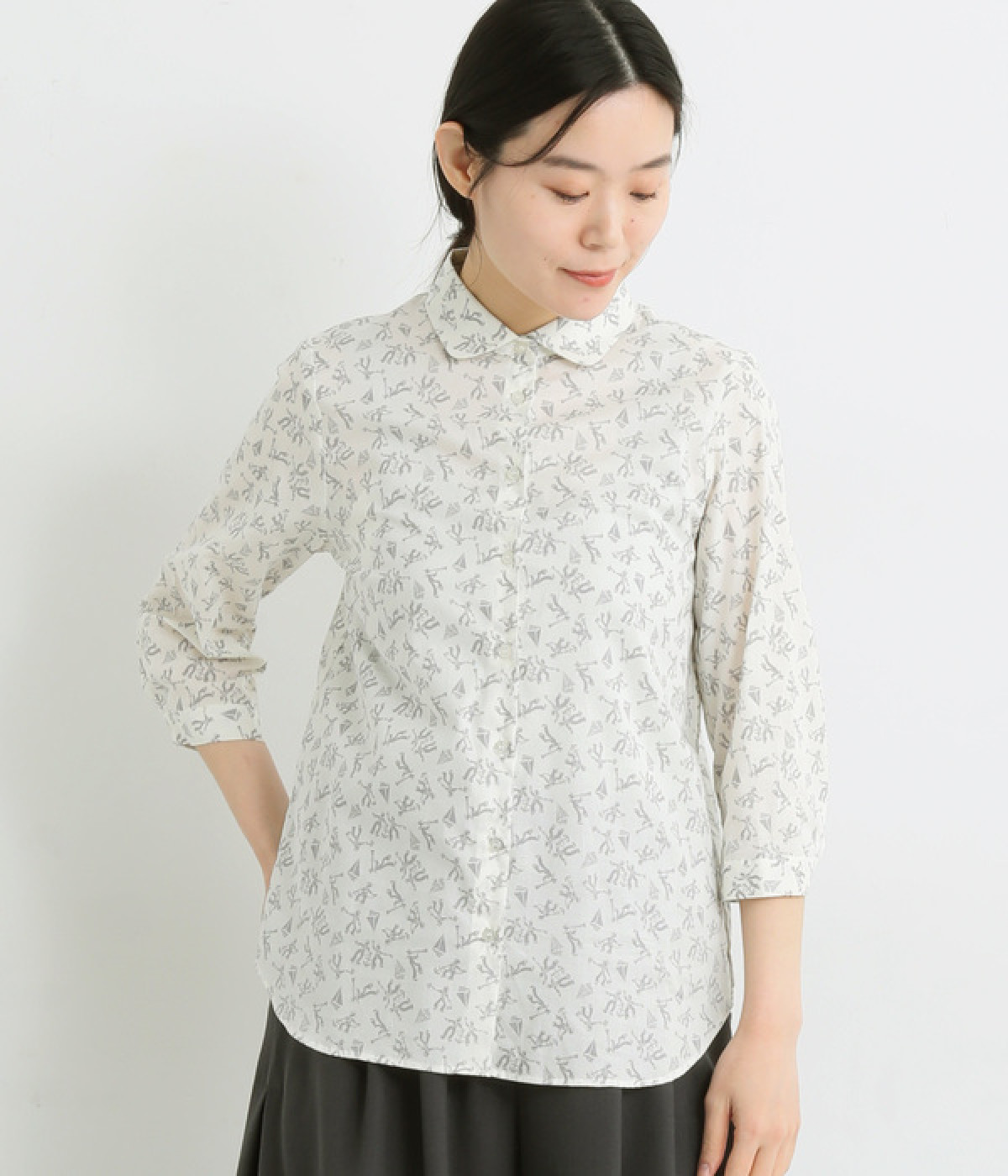 コットンローン森の動物小丸襟レギュラーシャツキナリ