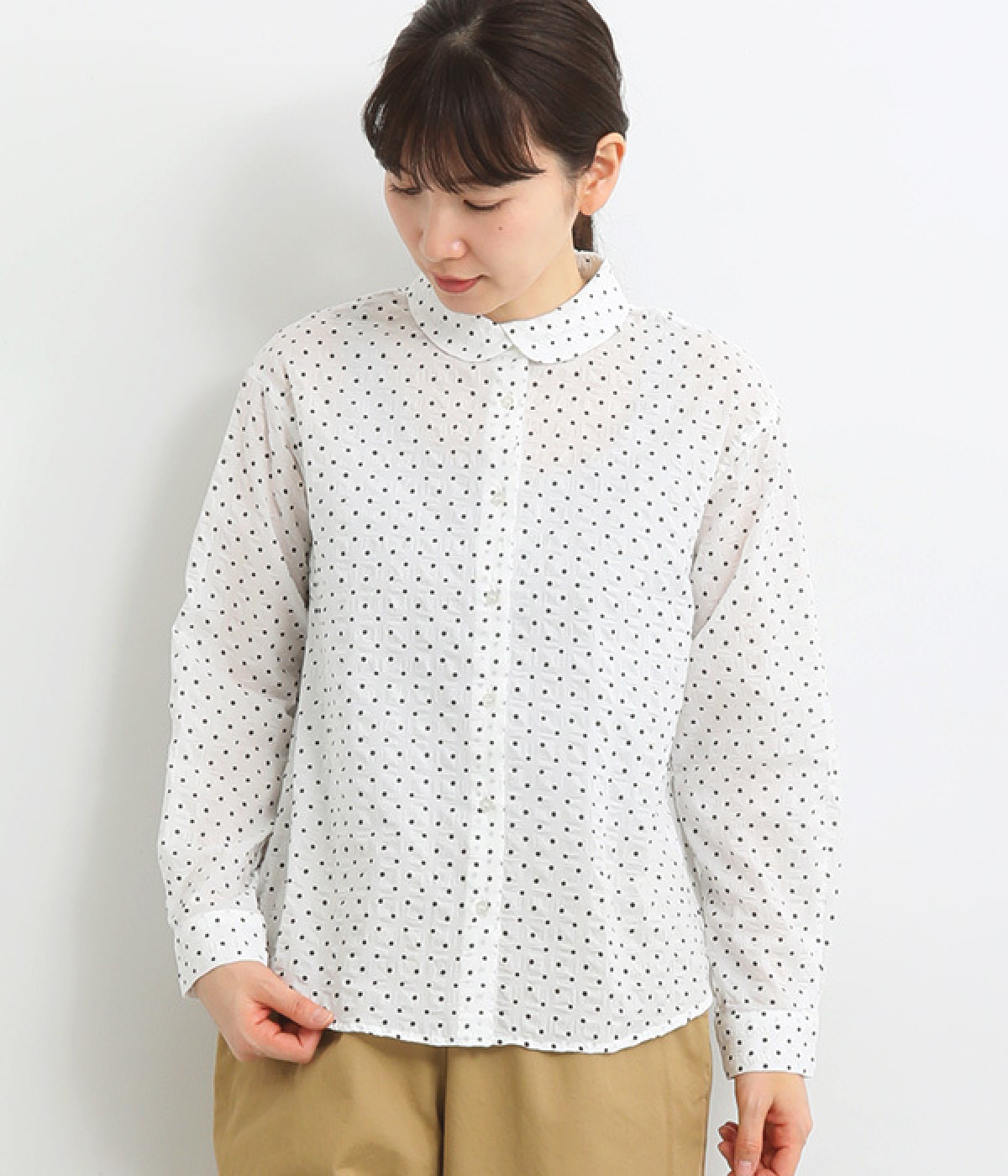 コットン小丸襟ポイント刺繍レギュラーシャツオフホワイト