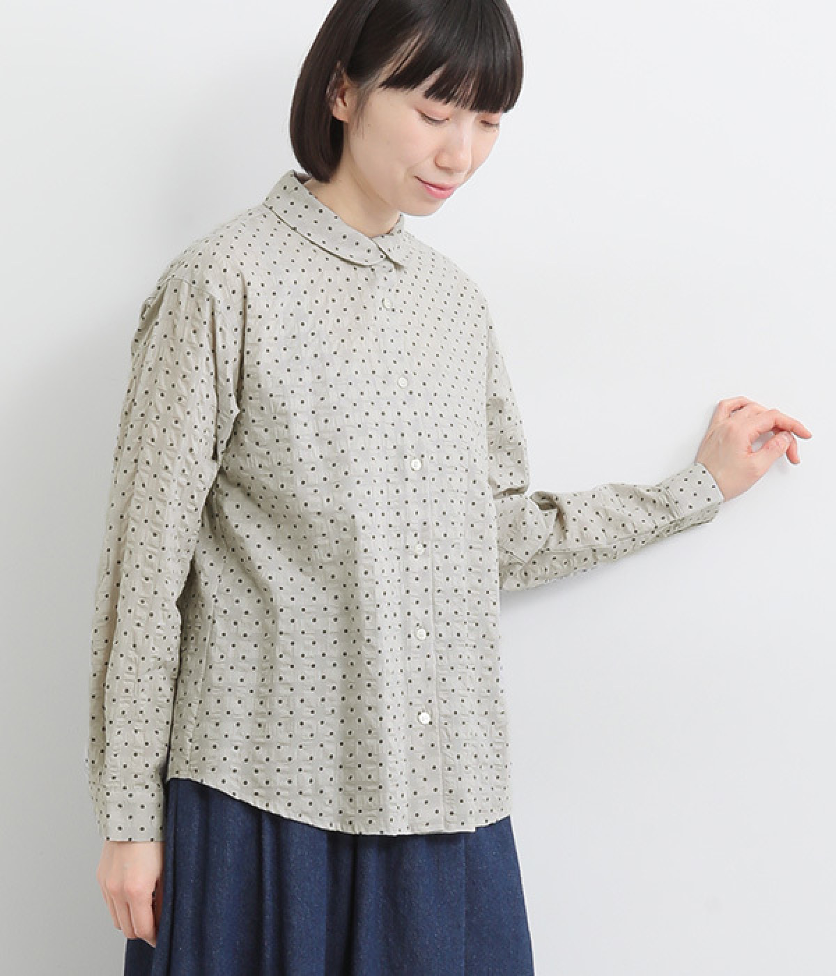 コットン小丸襟ポイント刺繍レギュラーシャツグレージュ