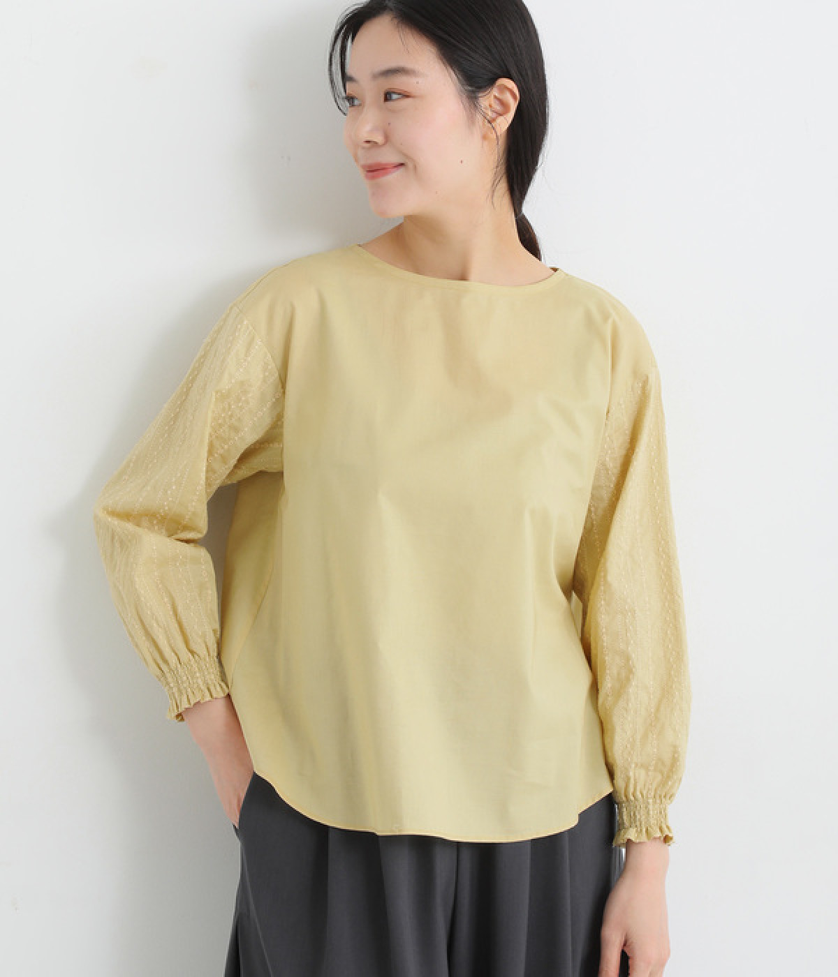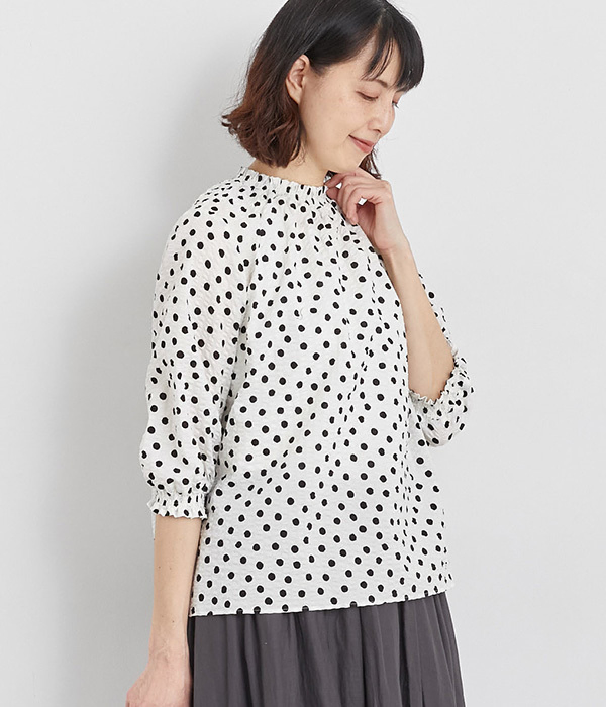 コットンウールガーゼドット刺繍スタンドからープルオーバーブラウスアイボリー