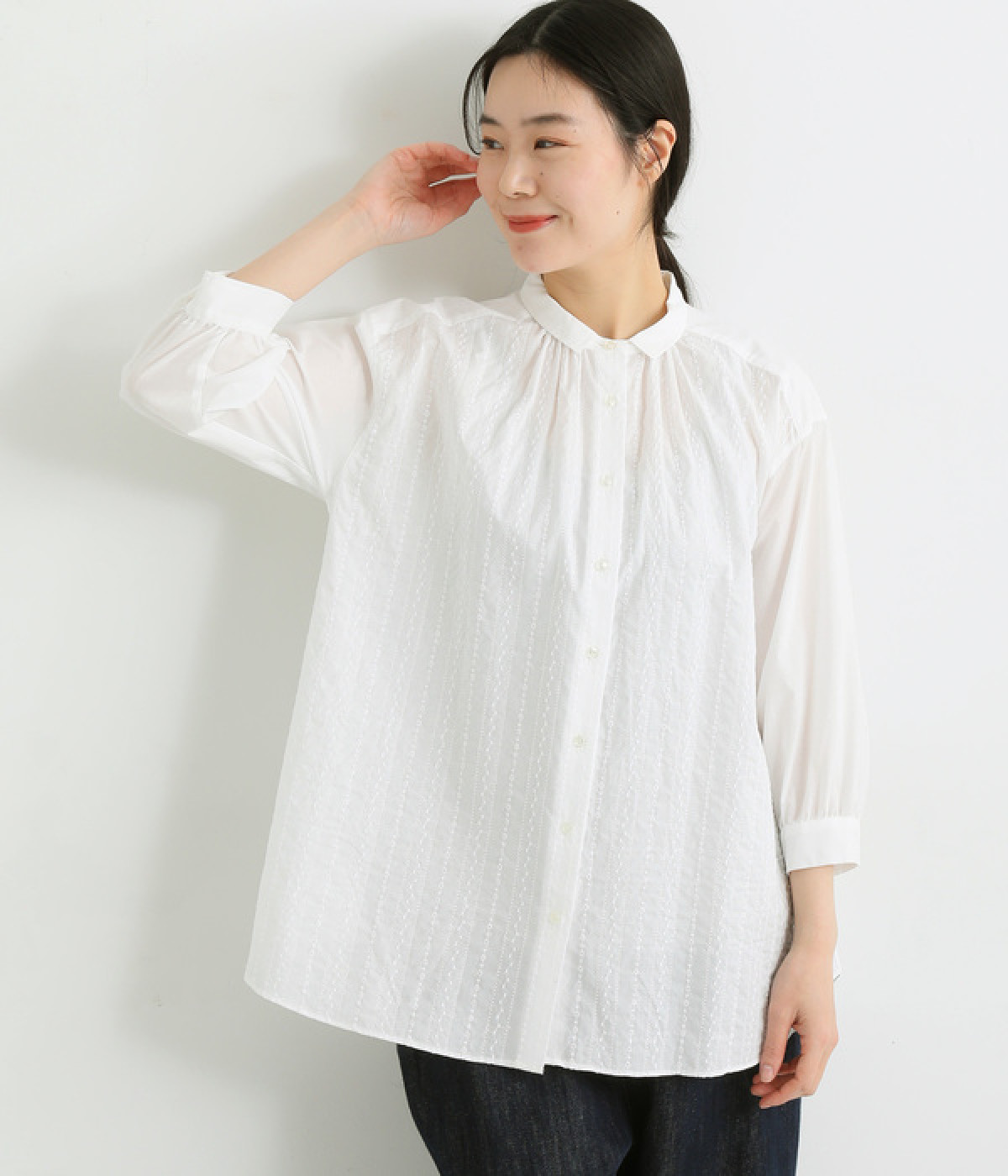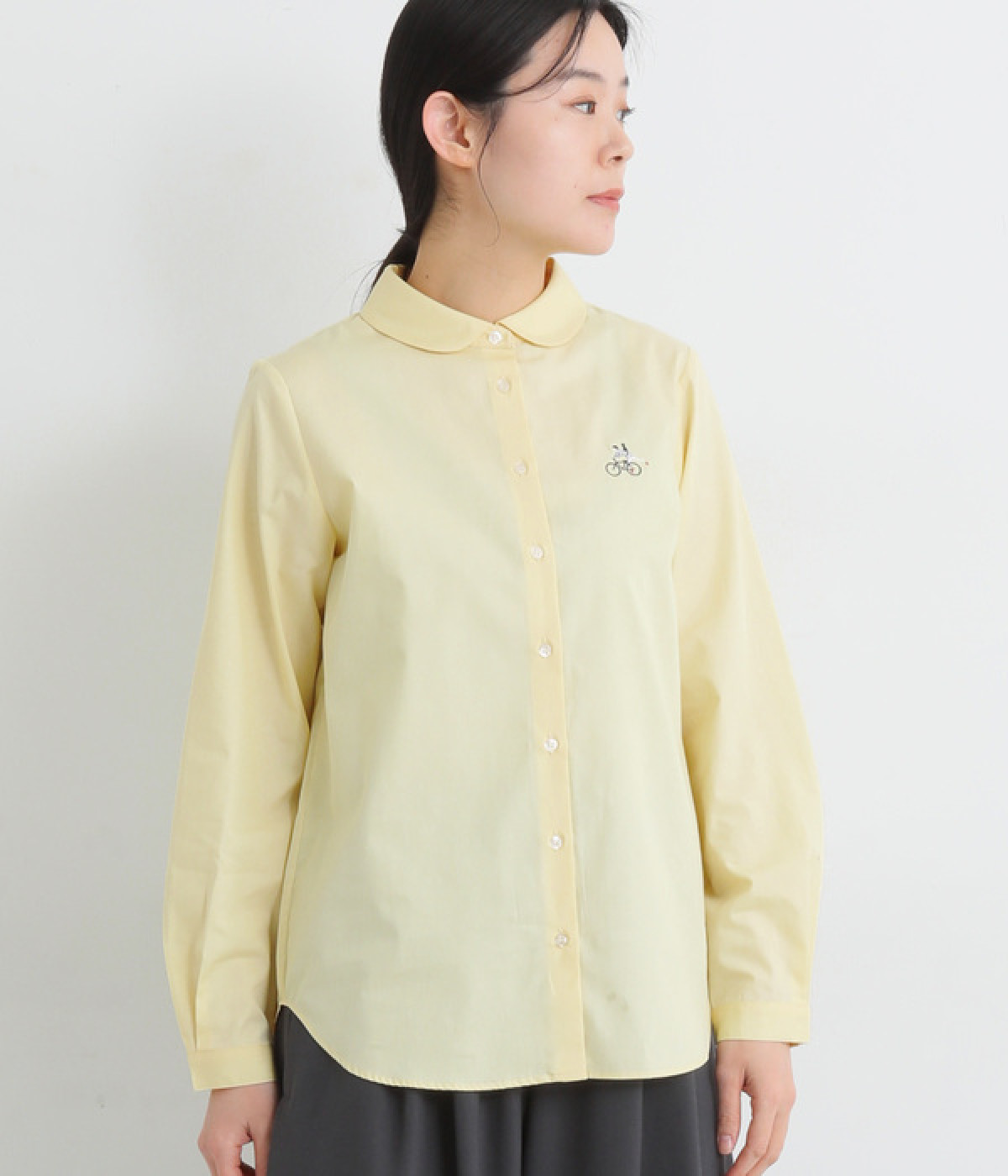 フラット風丸襟シツジ刺繍レギュラーシャツオフ