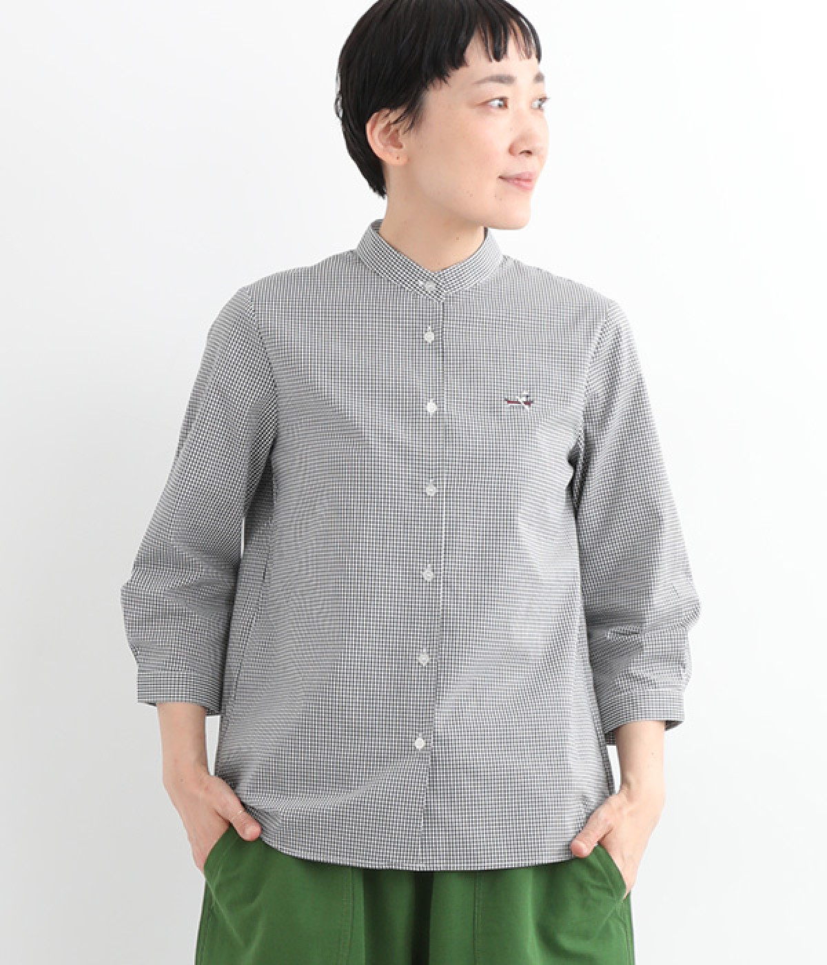 フラット風丸襟シツジ刺繍レギュラーシャツモノトーンチェック