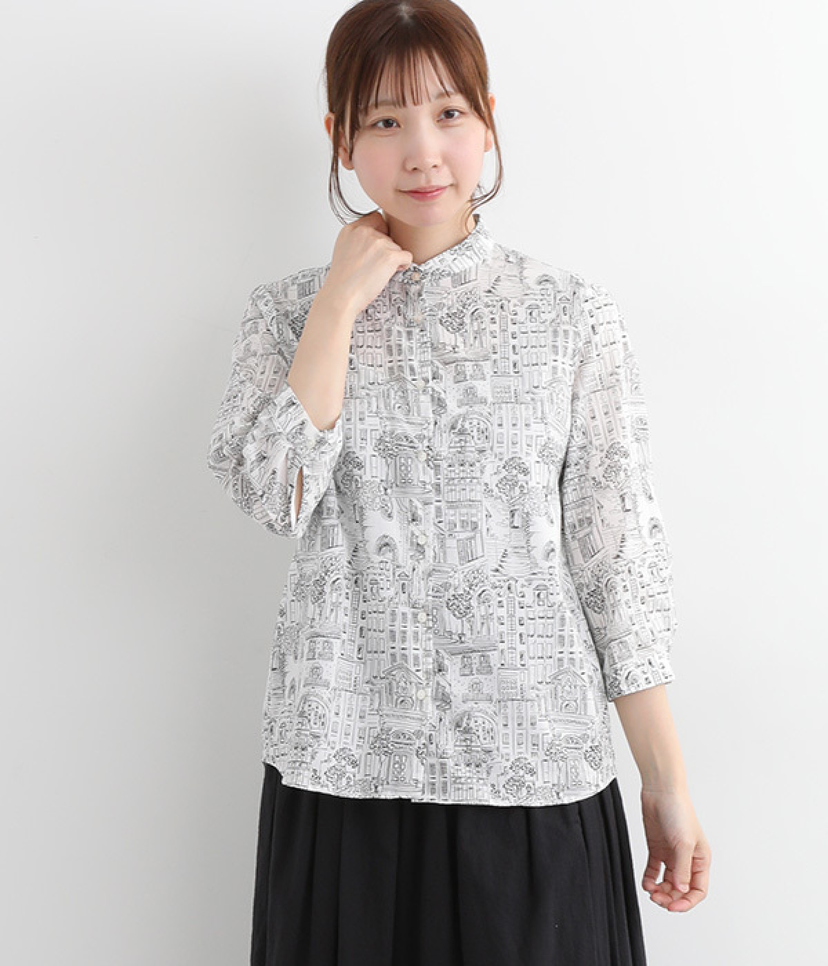 ビエラ森の中の家スタンドカラーレギュラーシャツアイボリー