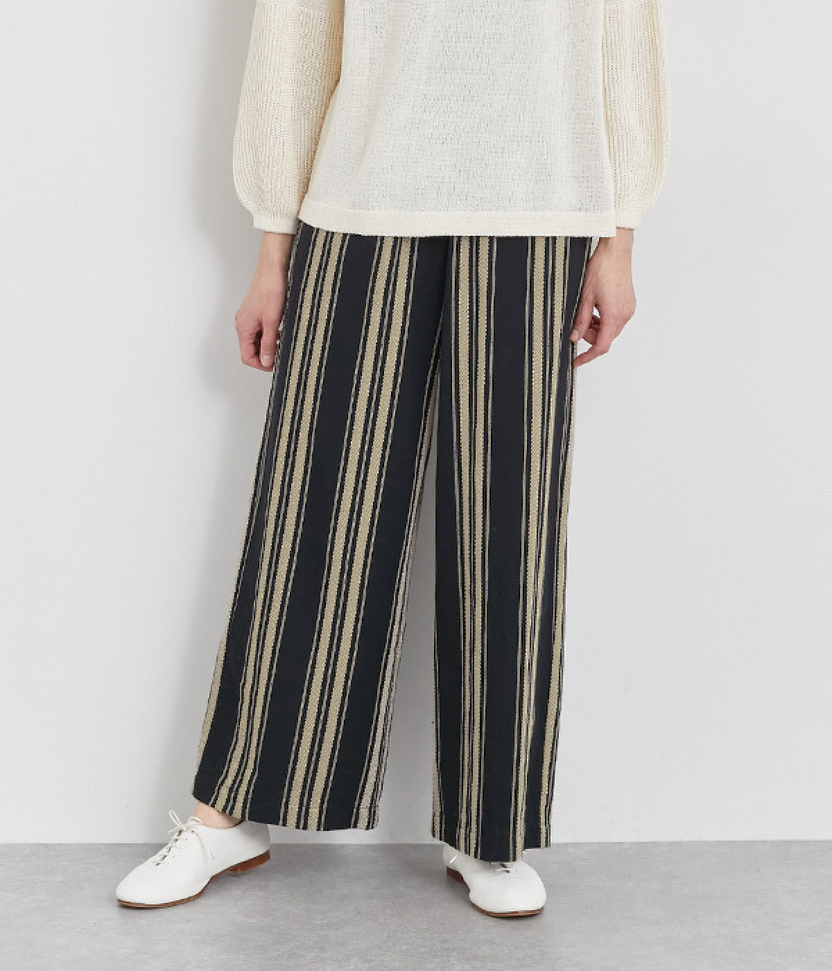 ストライプリボンプルオーバーシャツブラウスネイビー
