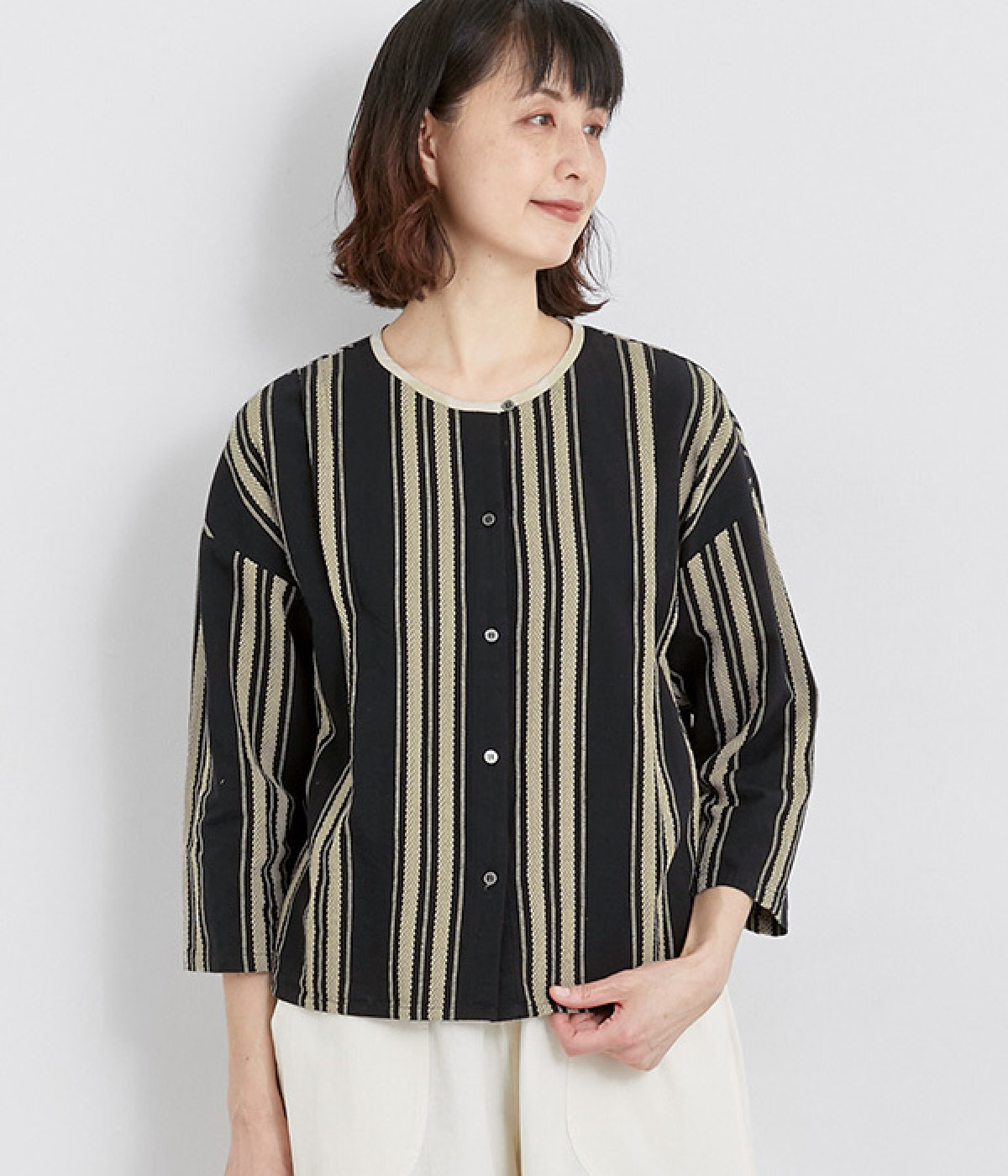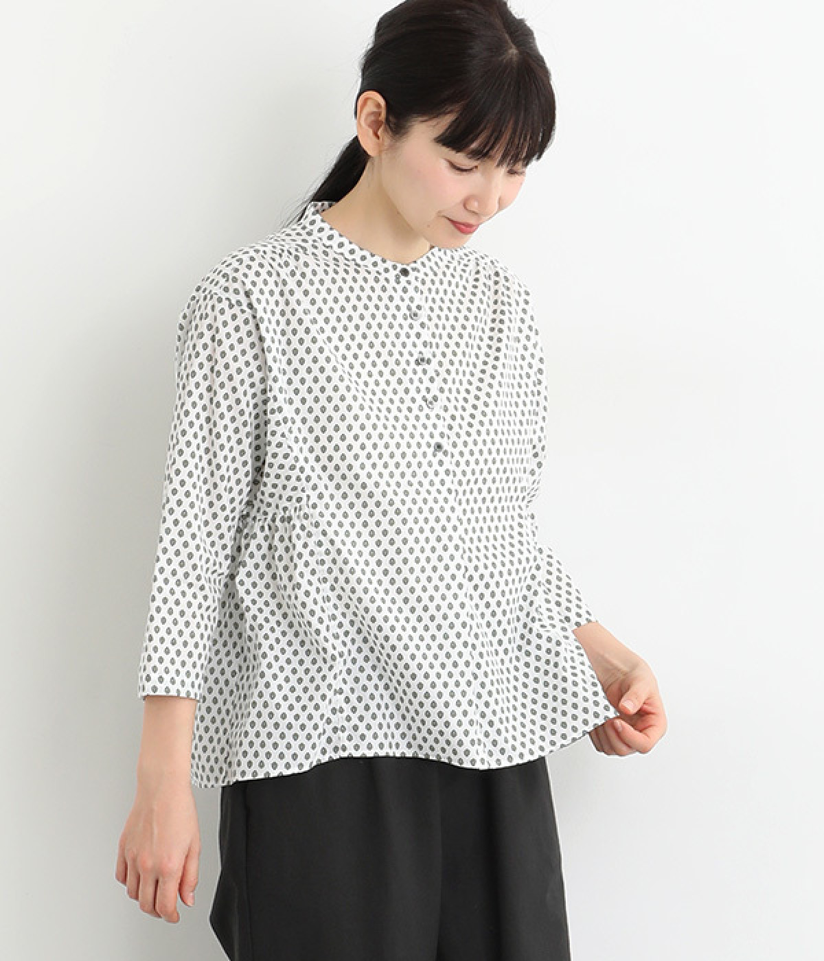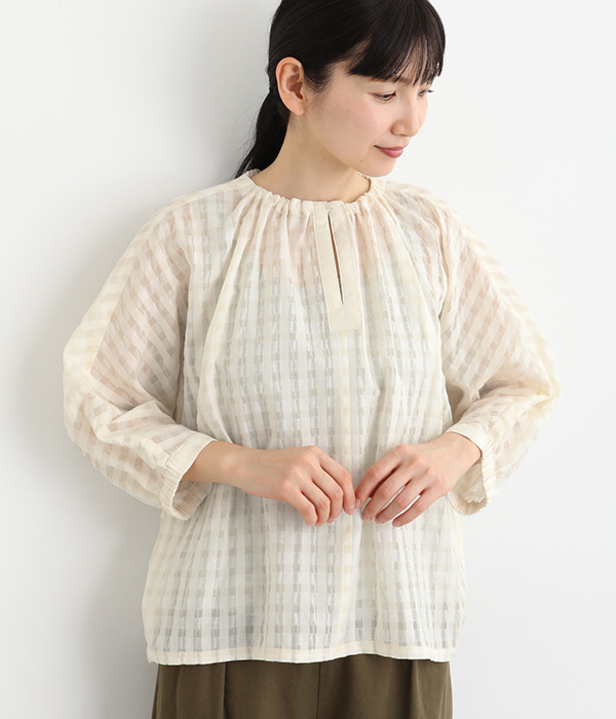 カットジャカードギャザーカフタンブラウスオフホワイト