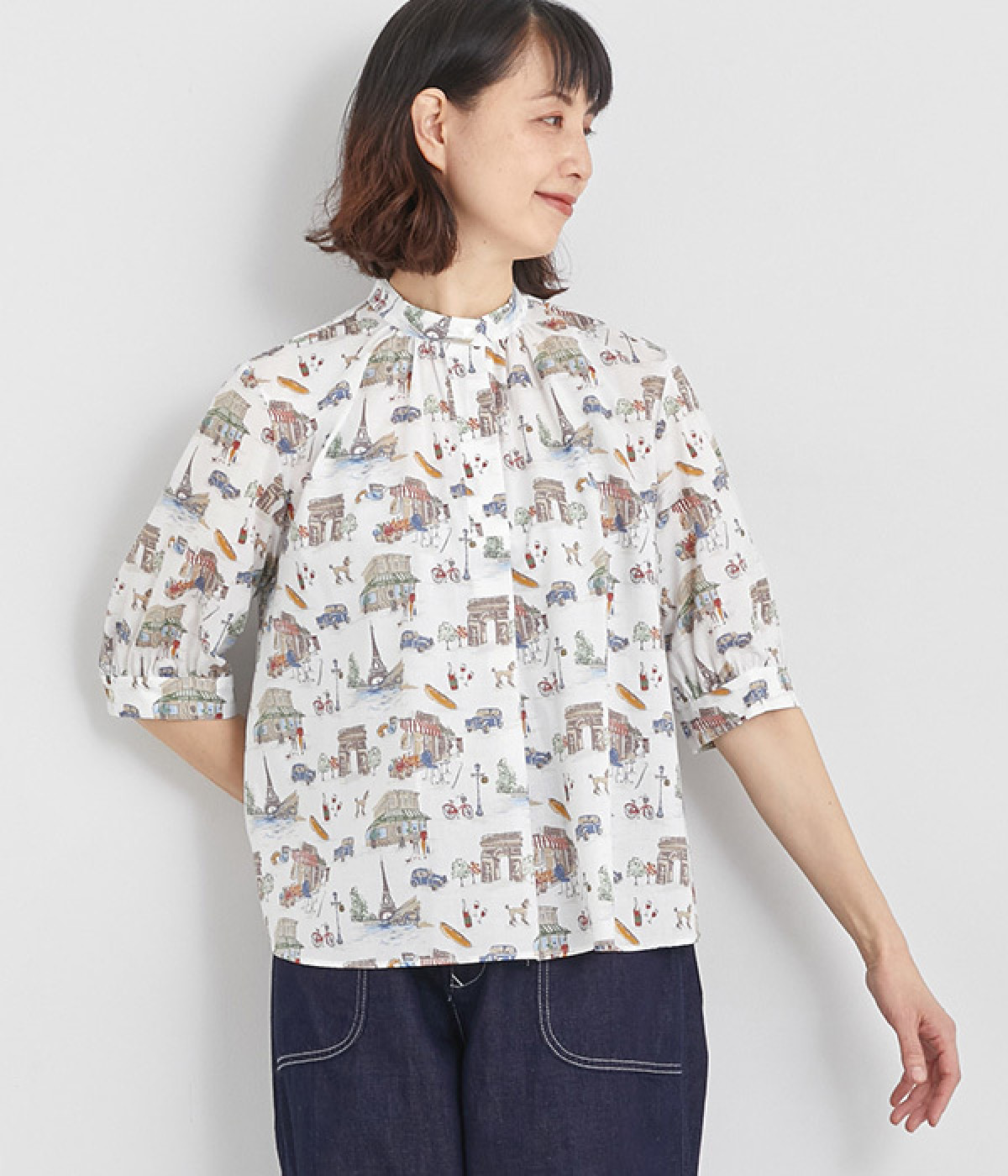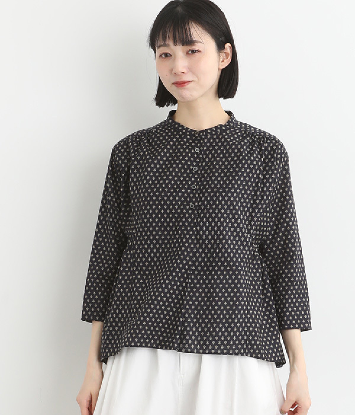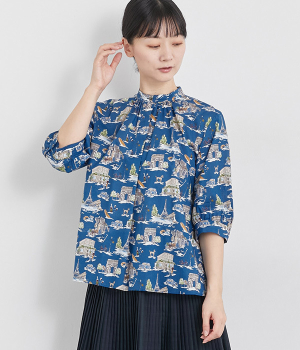 ブライトサッカープリントダブルカラースキッパーブラウスネイビー