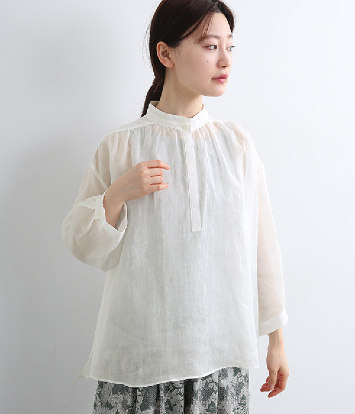 コットンローン袖ゴムコクーンプルオーバーブラウスオフホワイト