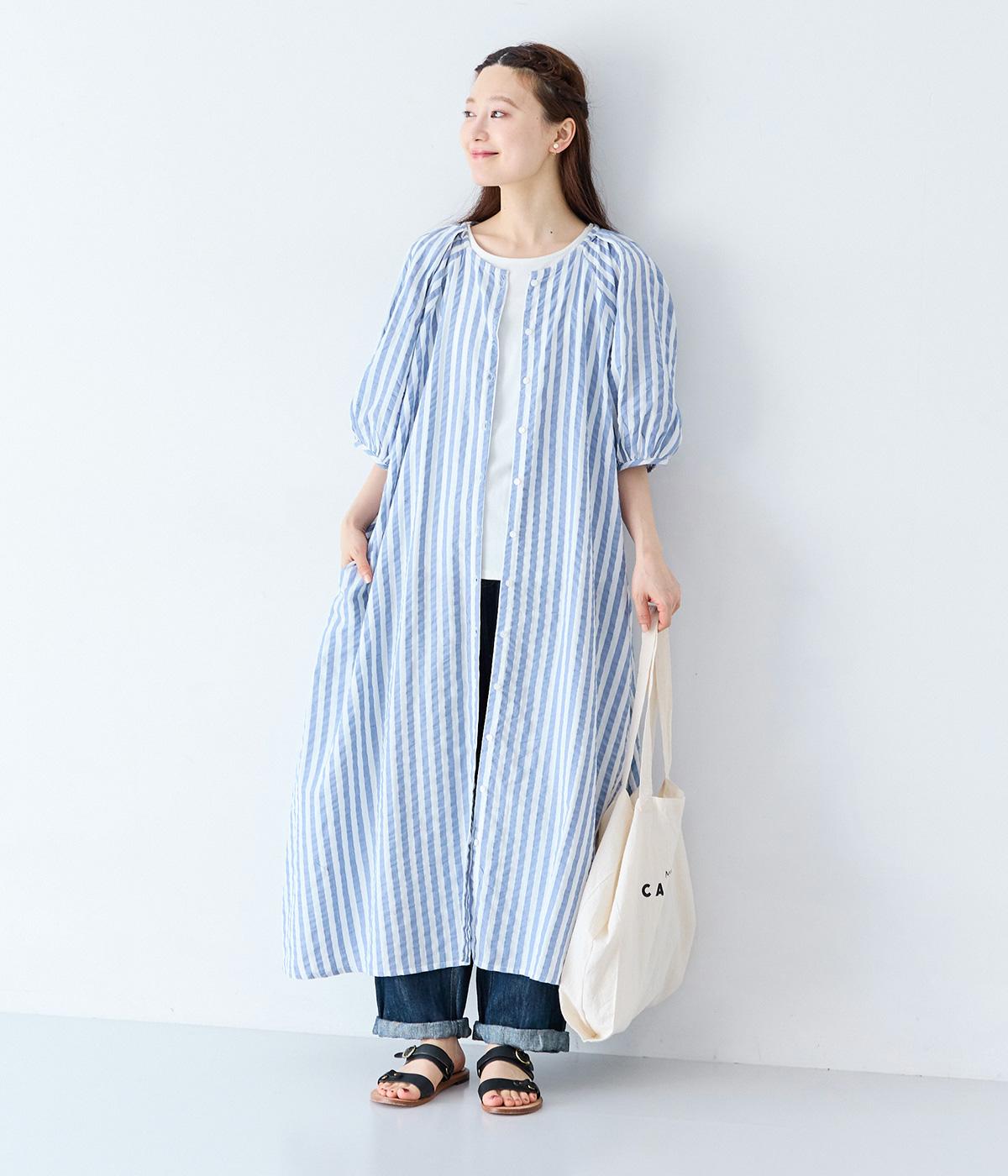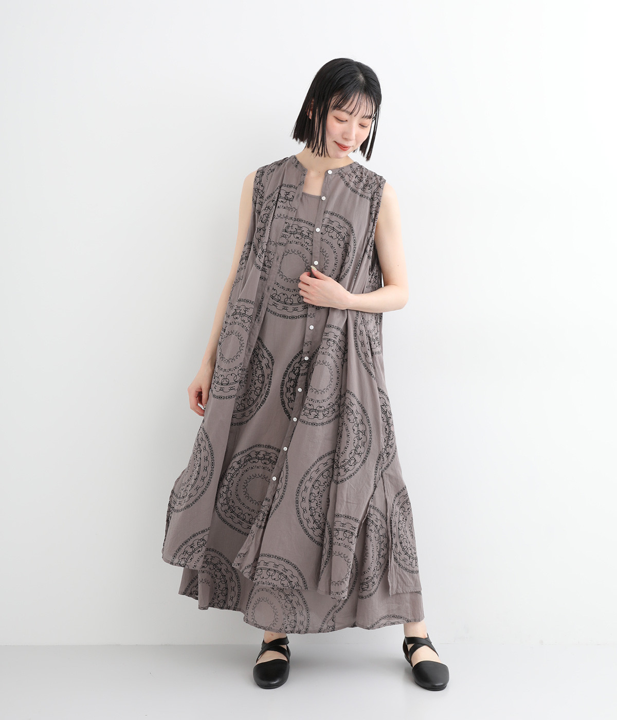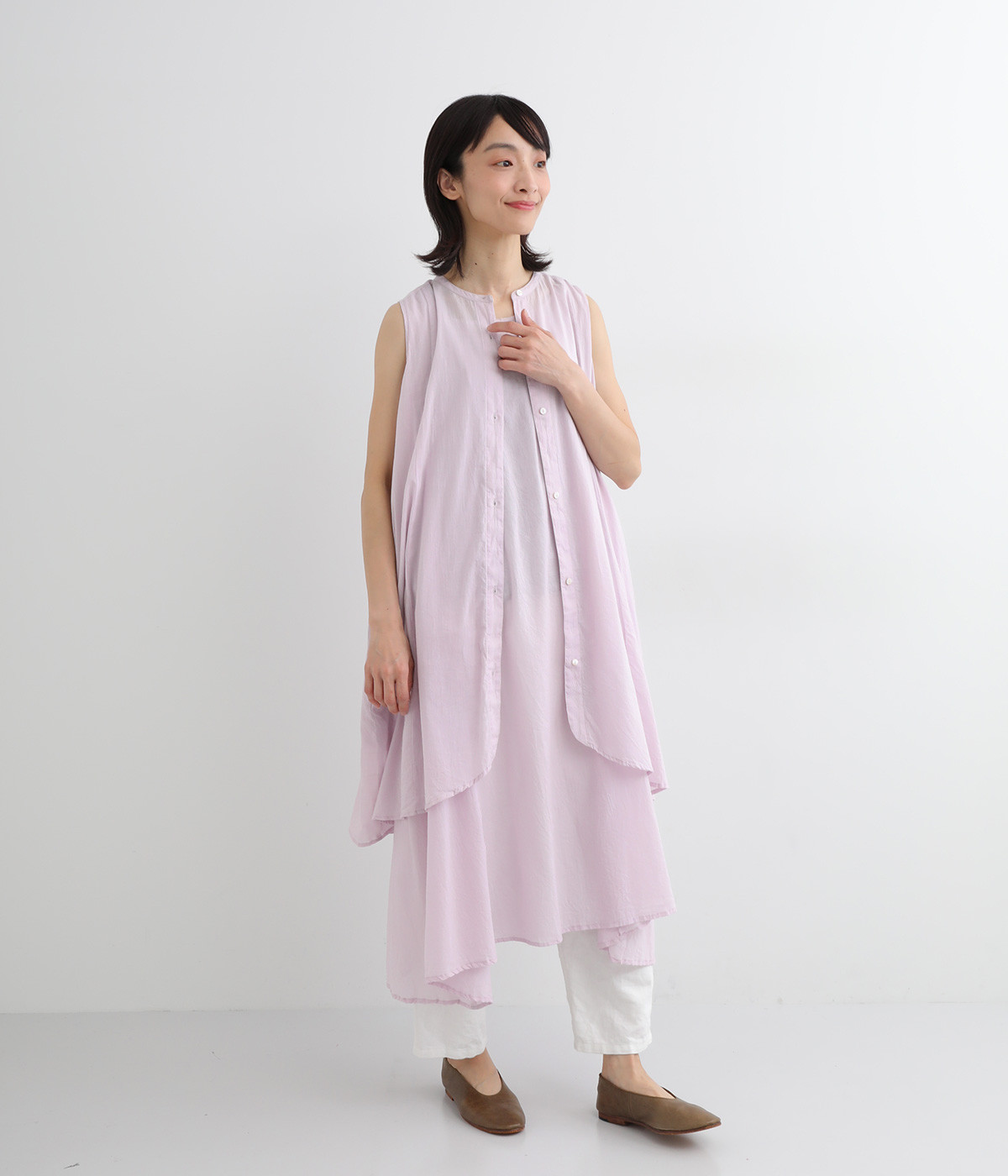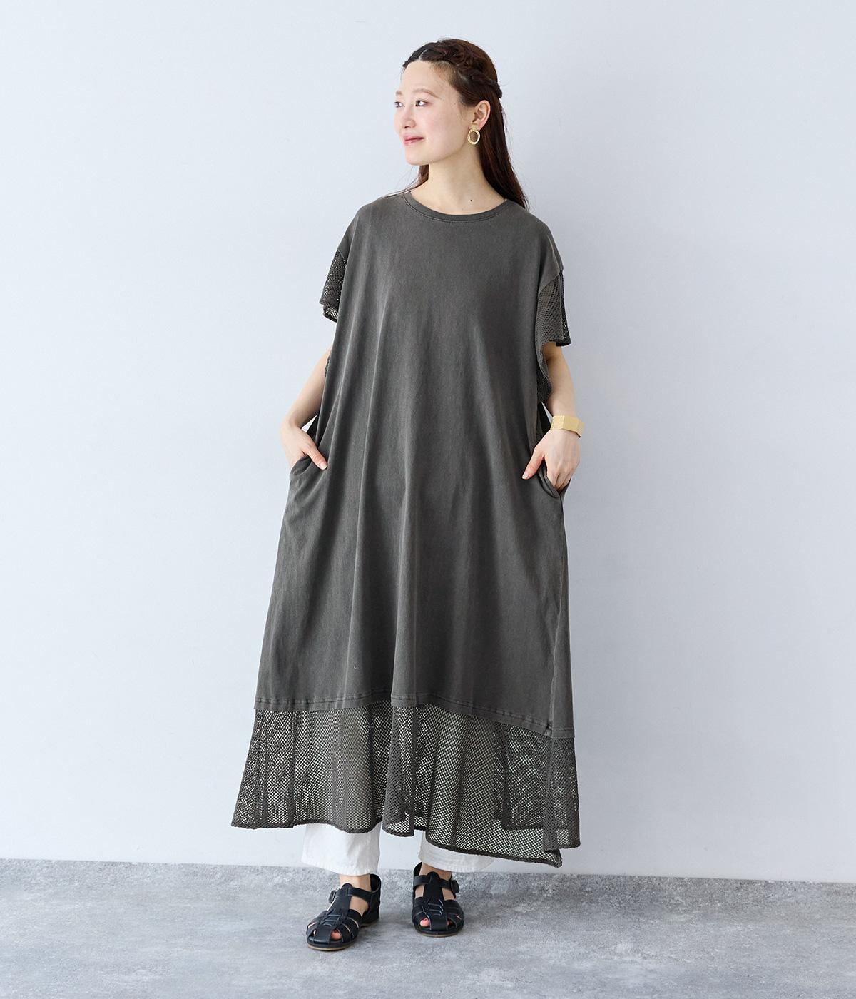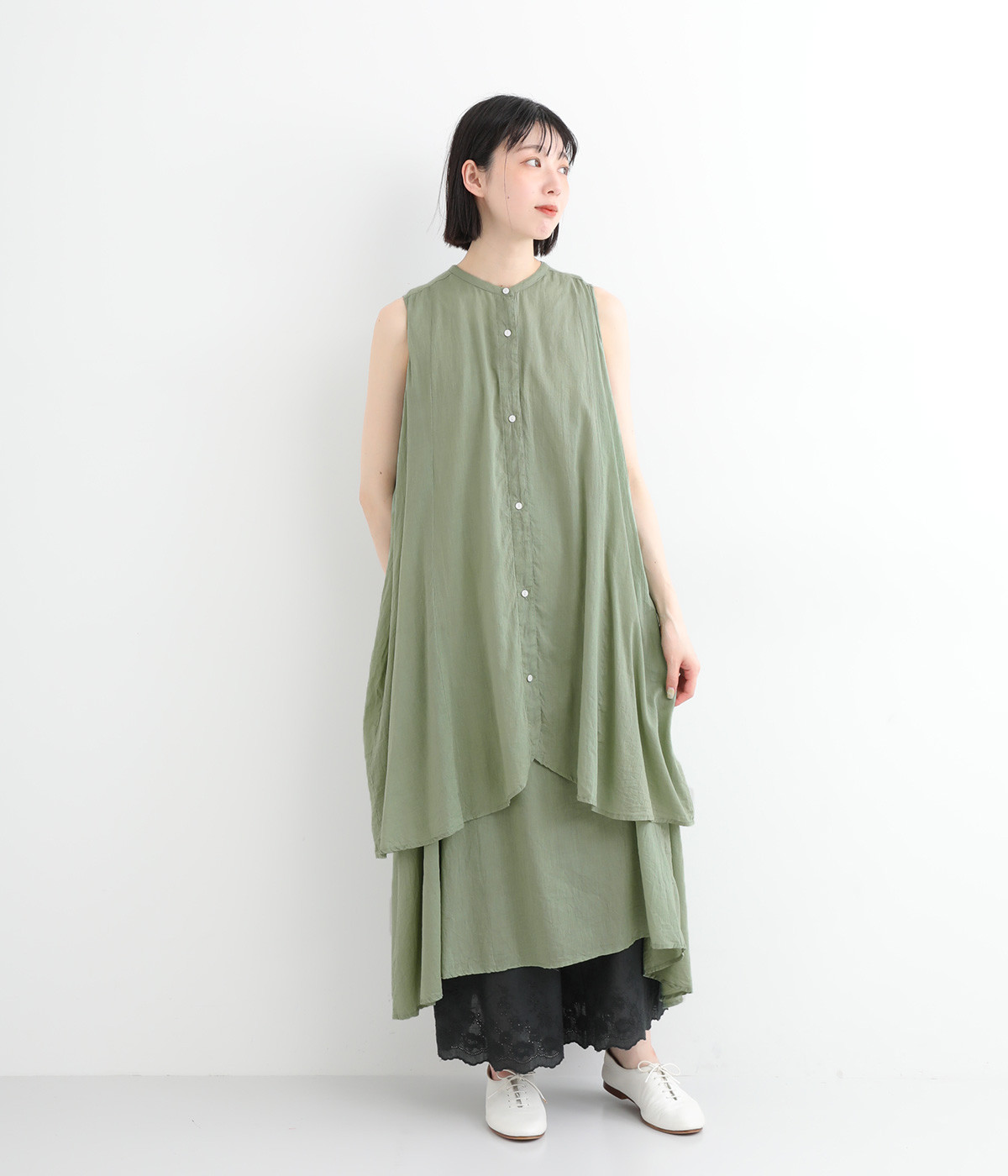 コットンダブルガーゼ 日本製品染2wayワンピースセージグレー