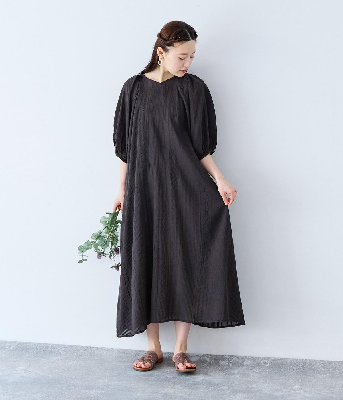 表起毛ツイルジャカードドットフレンチスリーブワンピースダークグレー