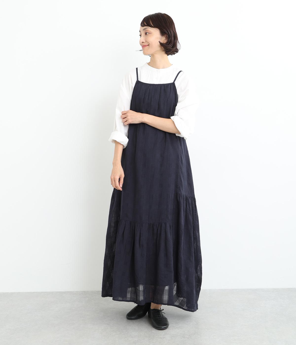 コットンリネン平織起毛2wayワンピースチドリクロ×グレージュ