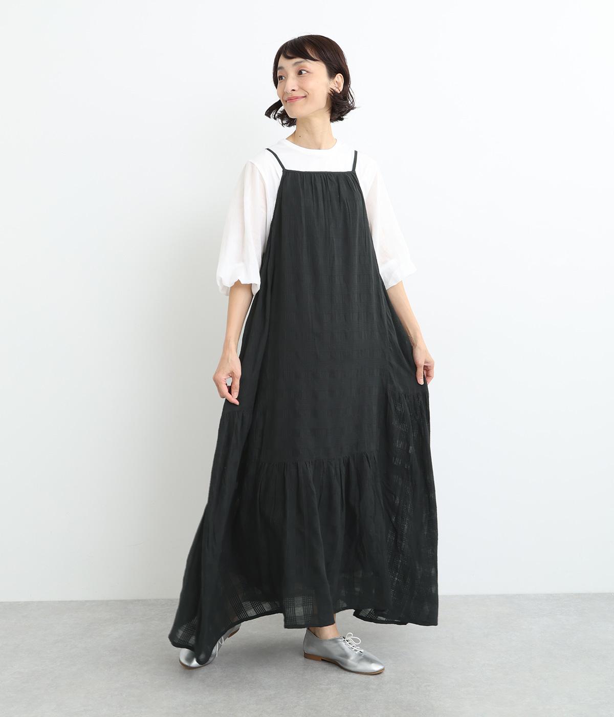 コットンダブルガーゼ 日本製品染2wayワンピースクロ