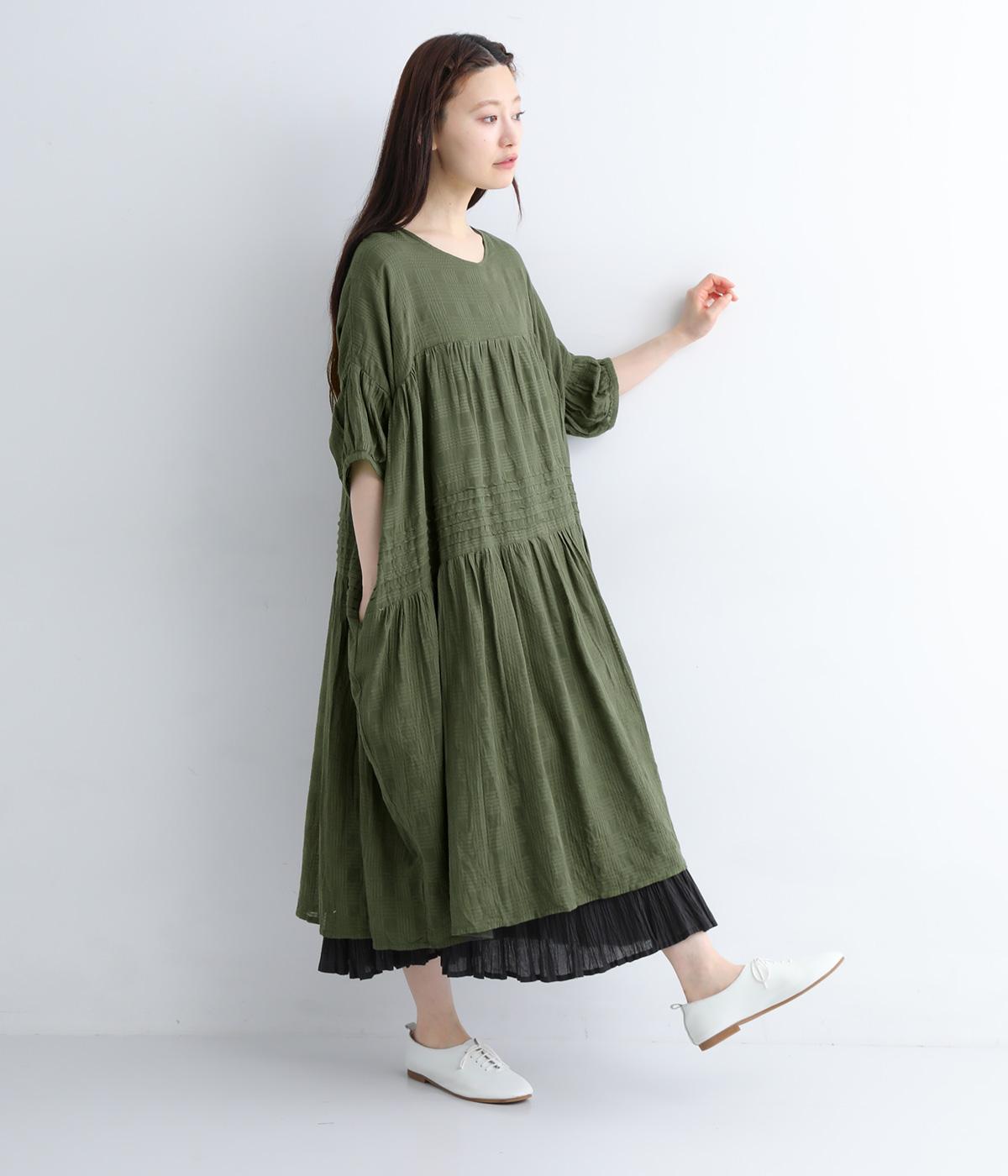 コットンダブルガーゼ 日本製品染2wayワンピースダークグリーン
