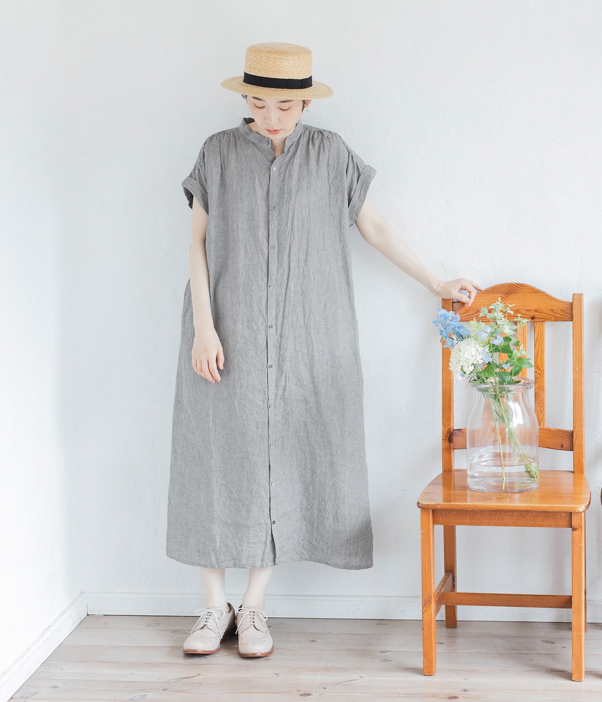 14番手リネンバイヤス切り替えワンピースアッシュグレー