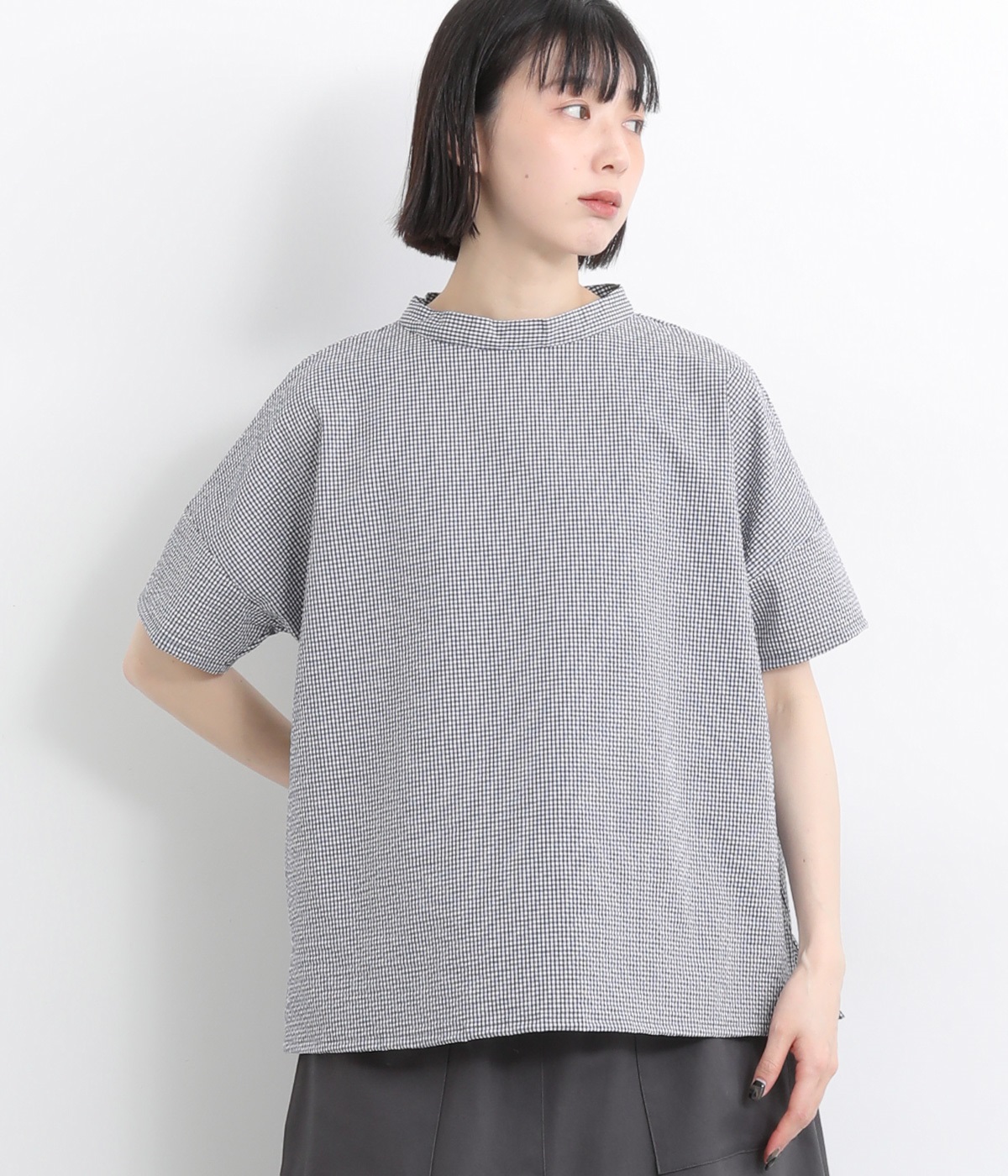 千鳥格子ツイル Aラインワンピースグレー