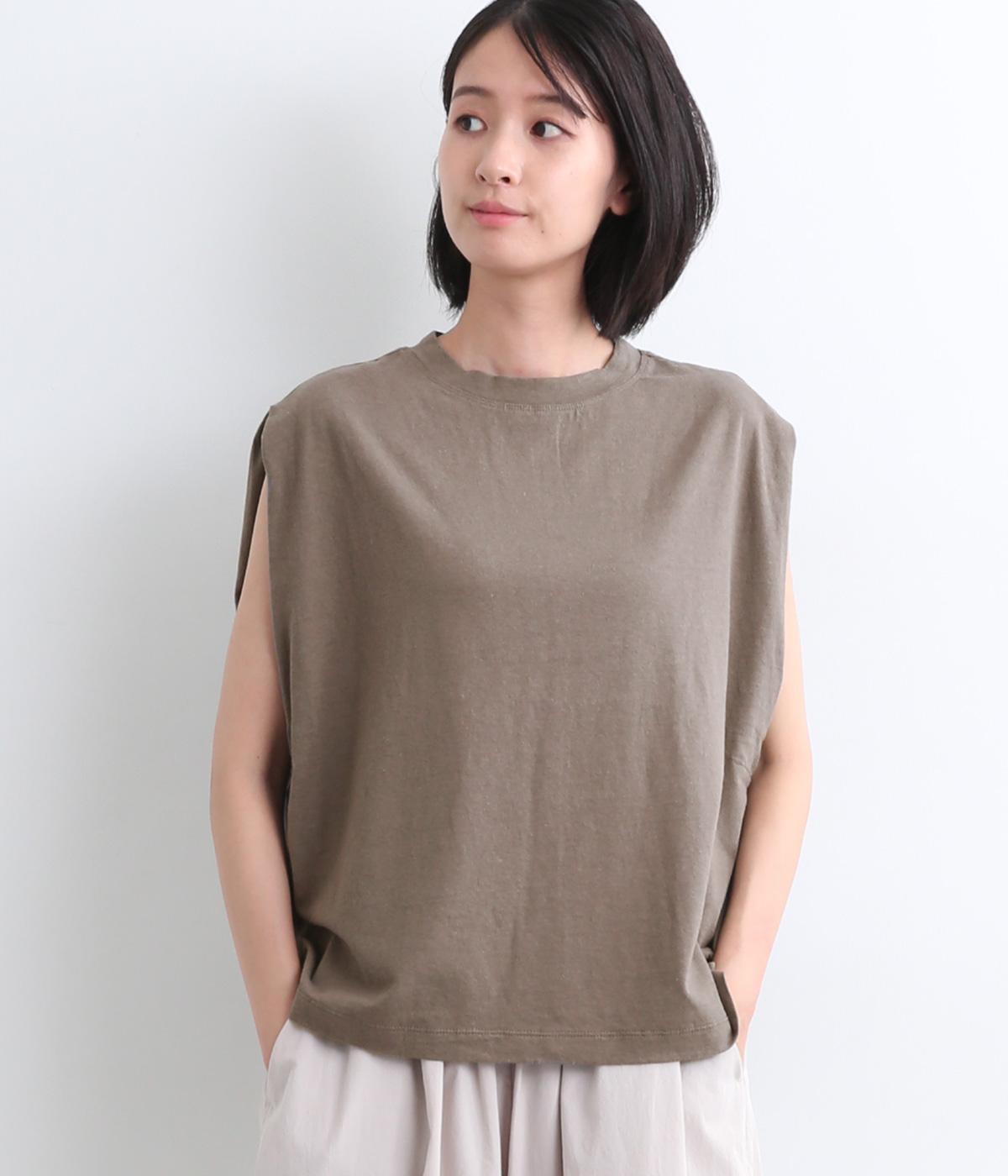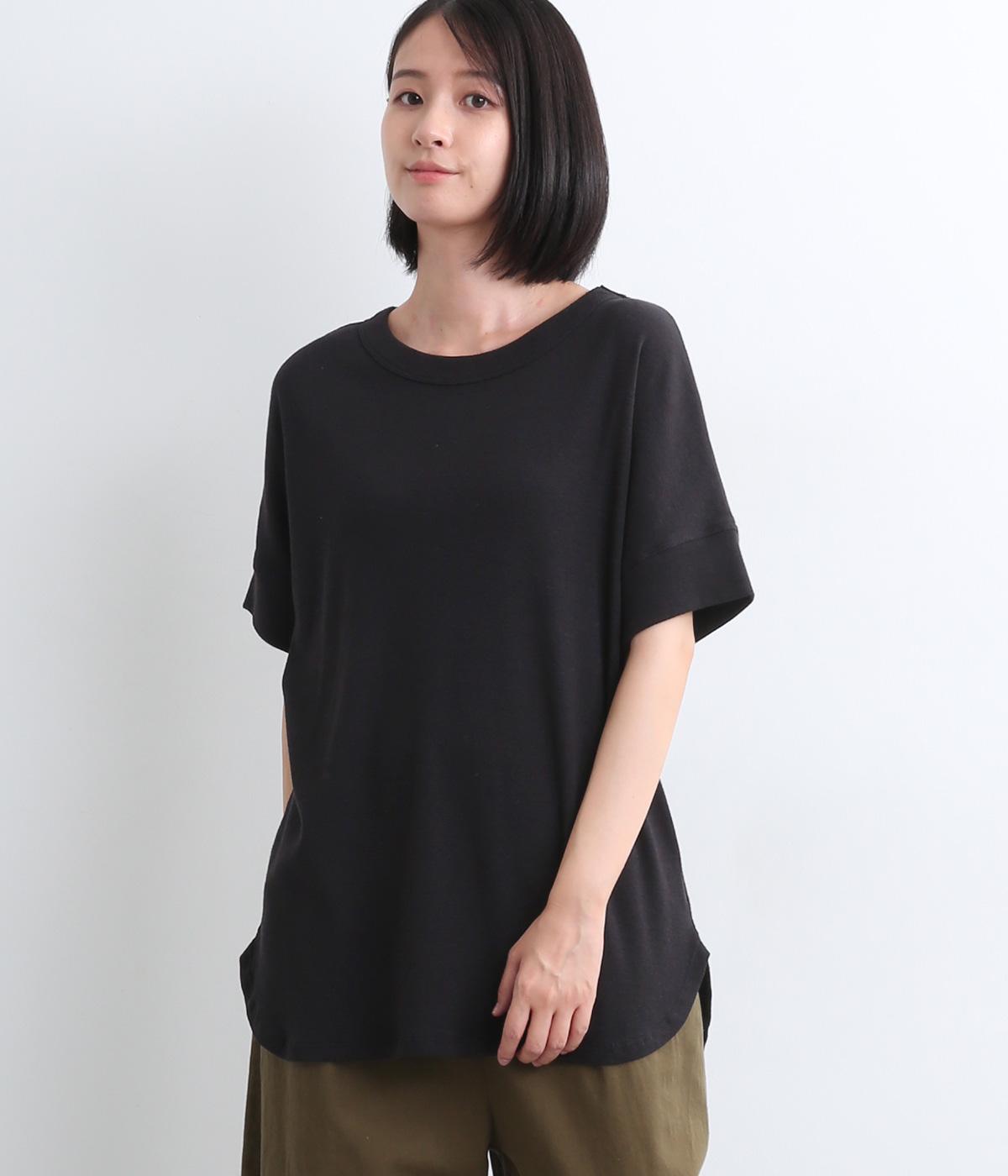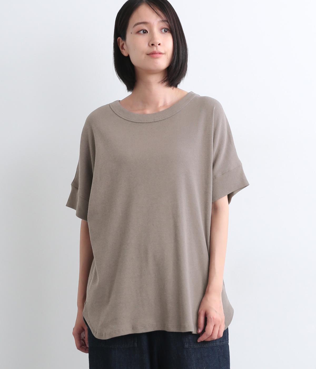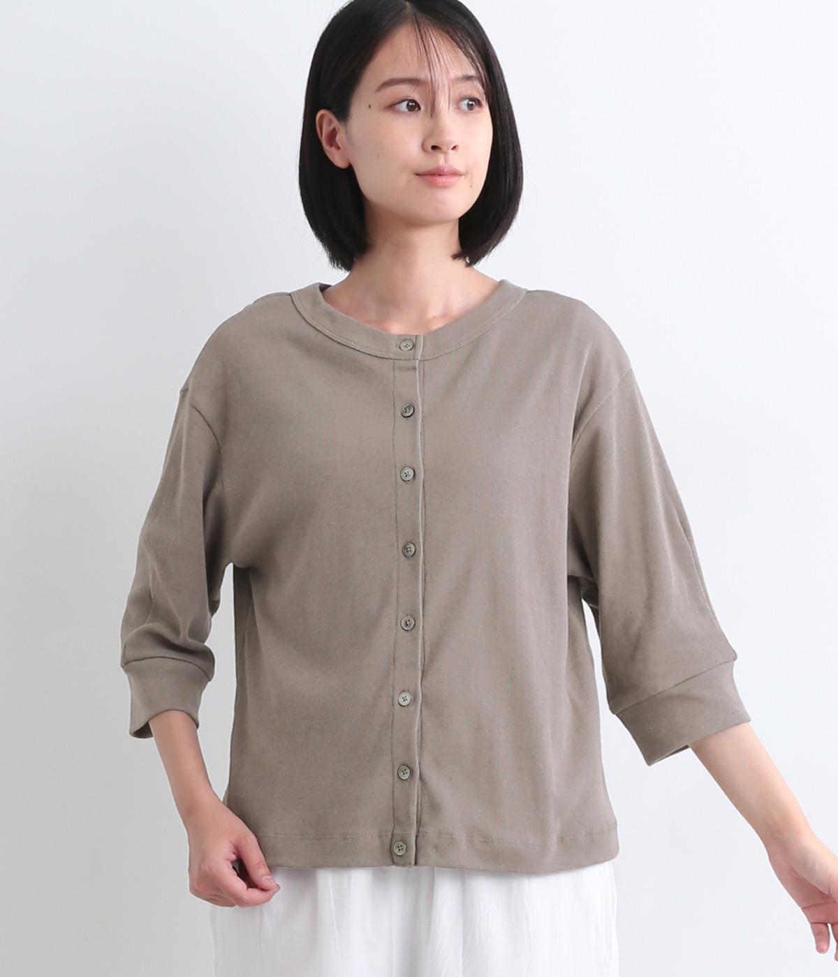 五者混天竺編みドルマン9分袖ニットライトブラウン