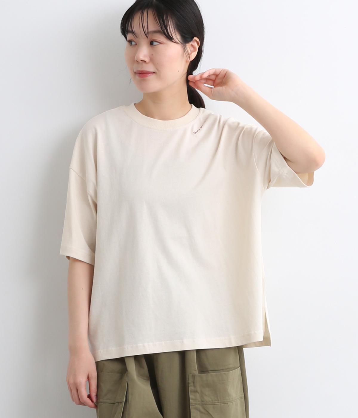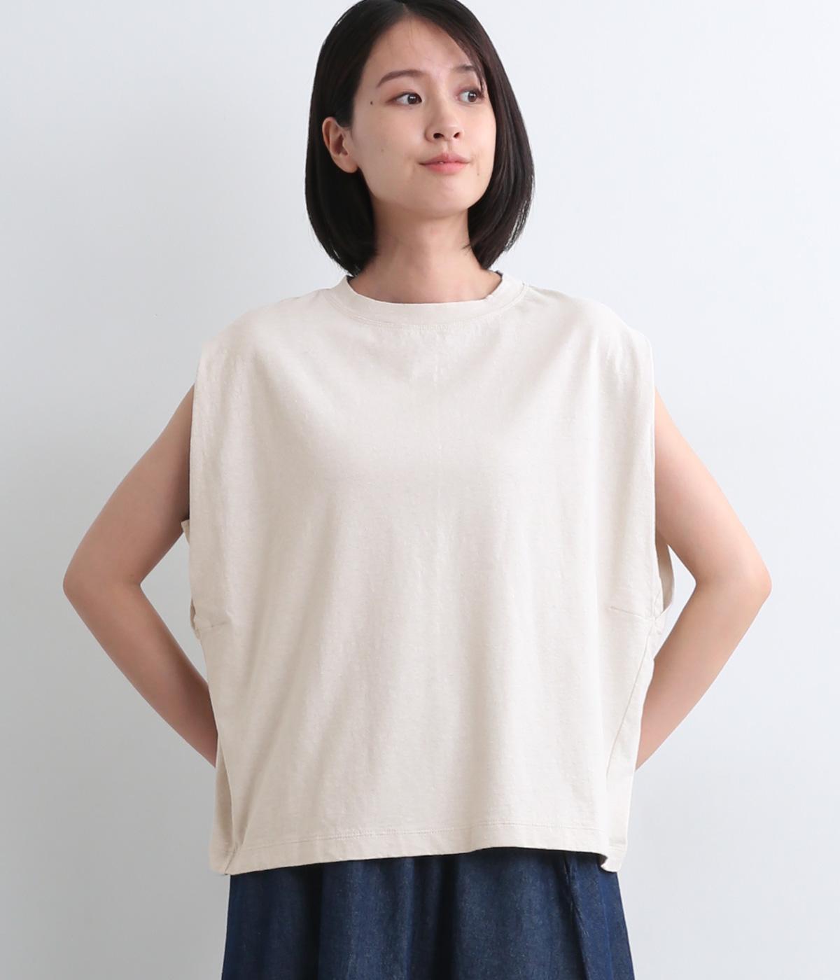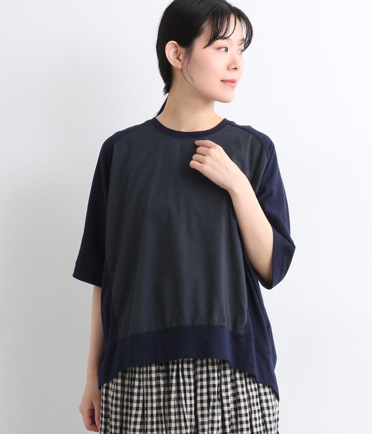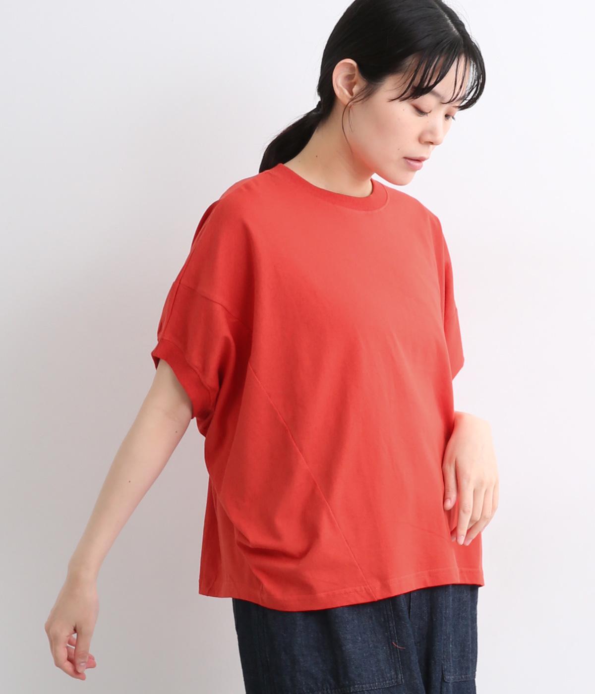 五者混天竺編みドルマン9分袖ニットライトブラウン