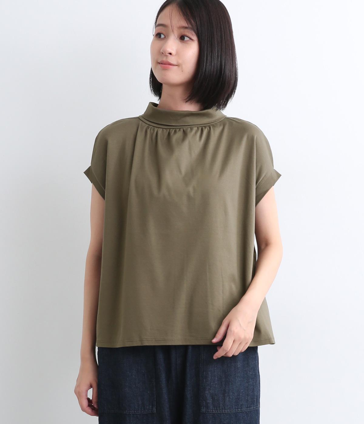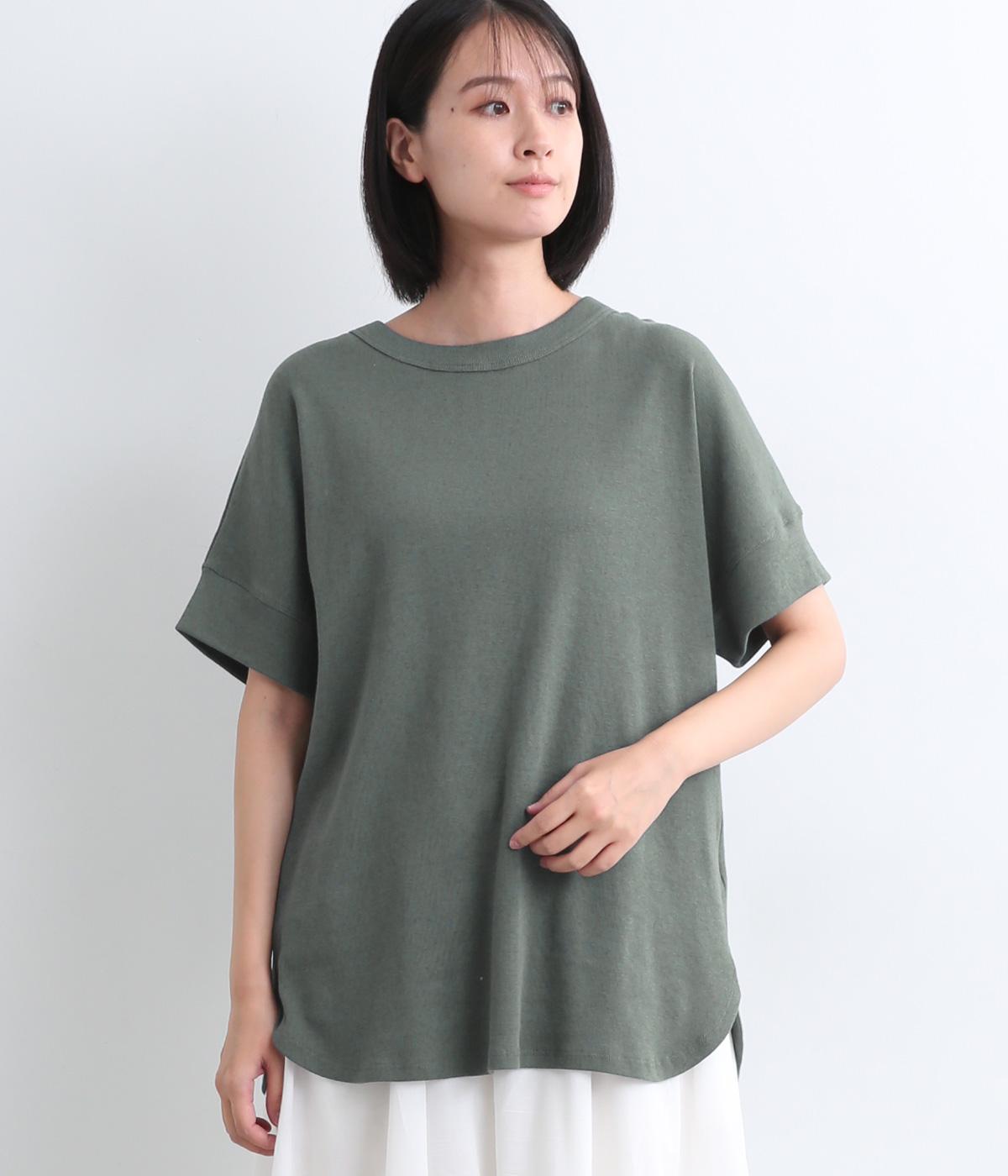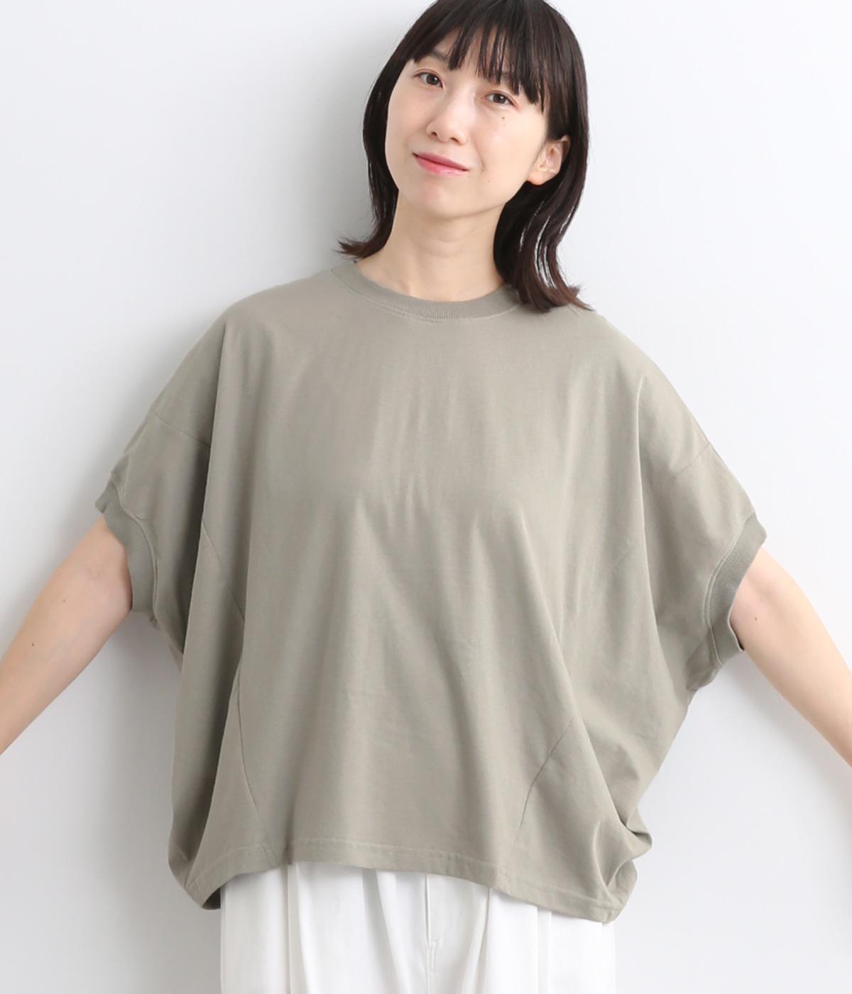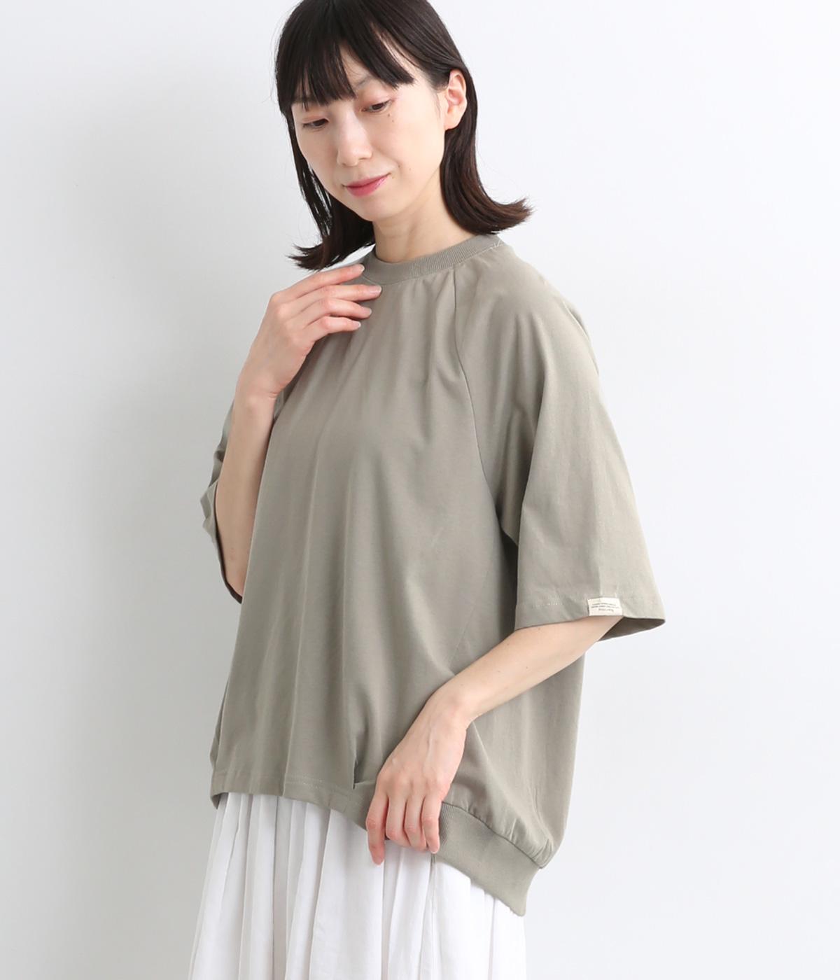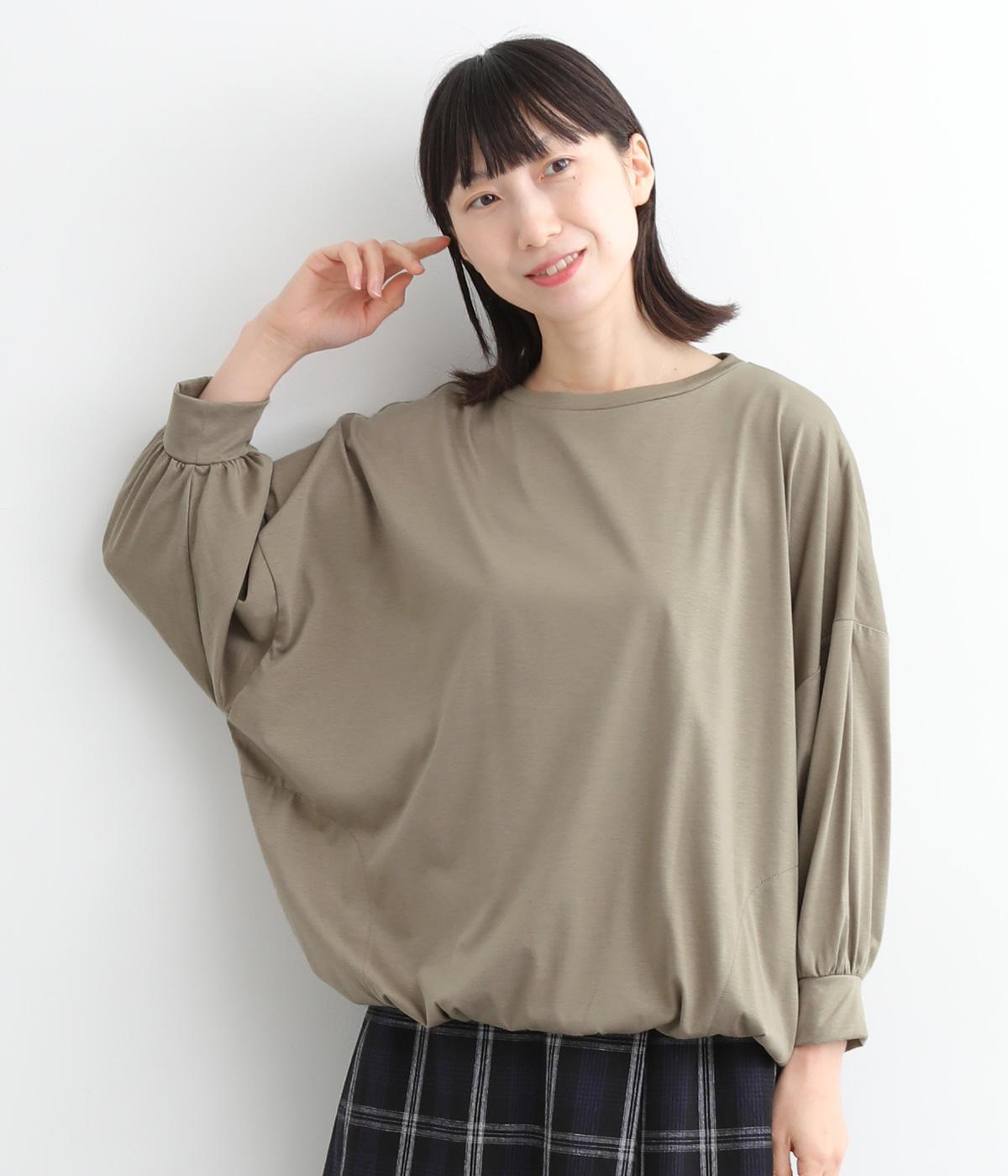 五者混天竺編みドルマン9分袖ニットカーキベージュ