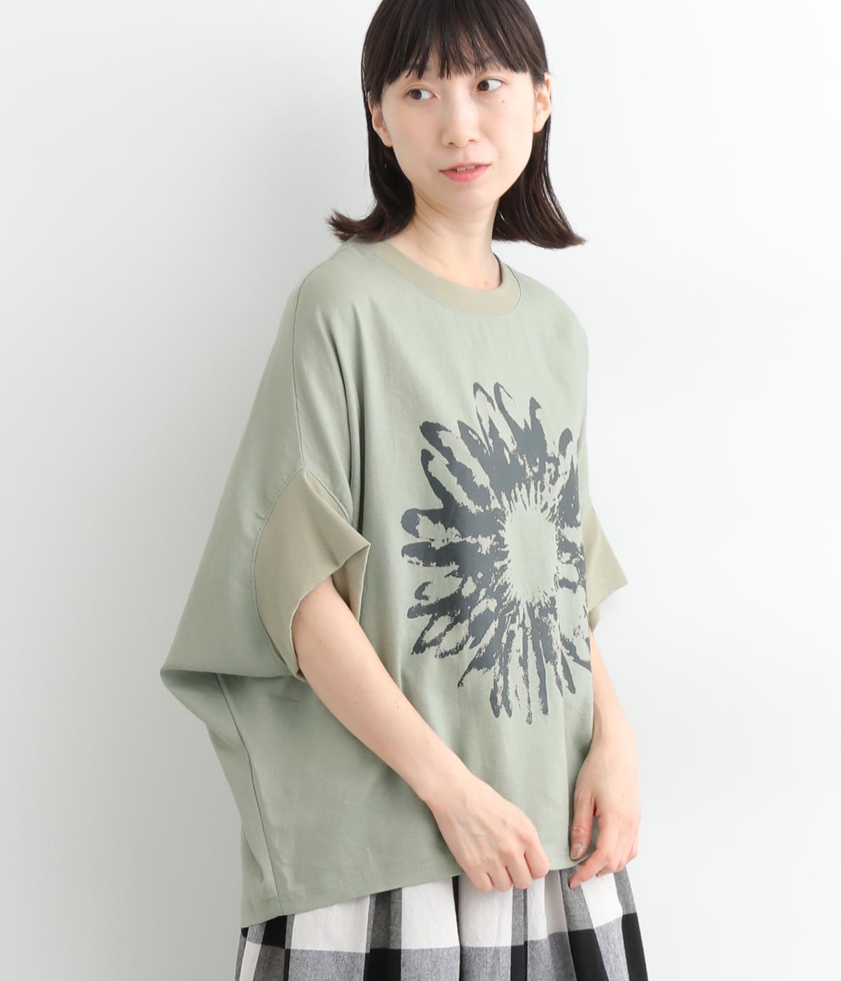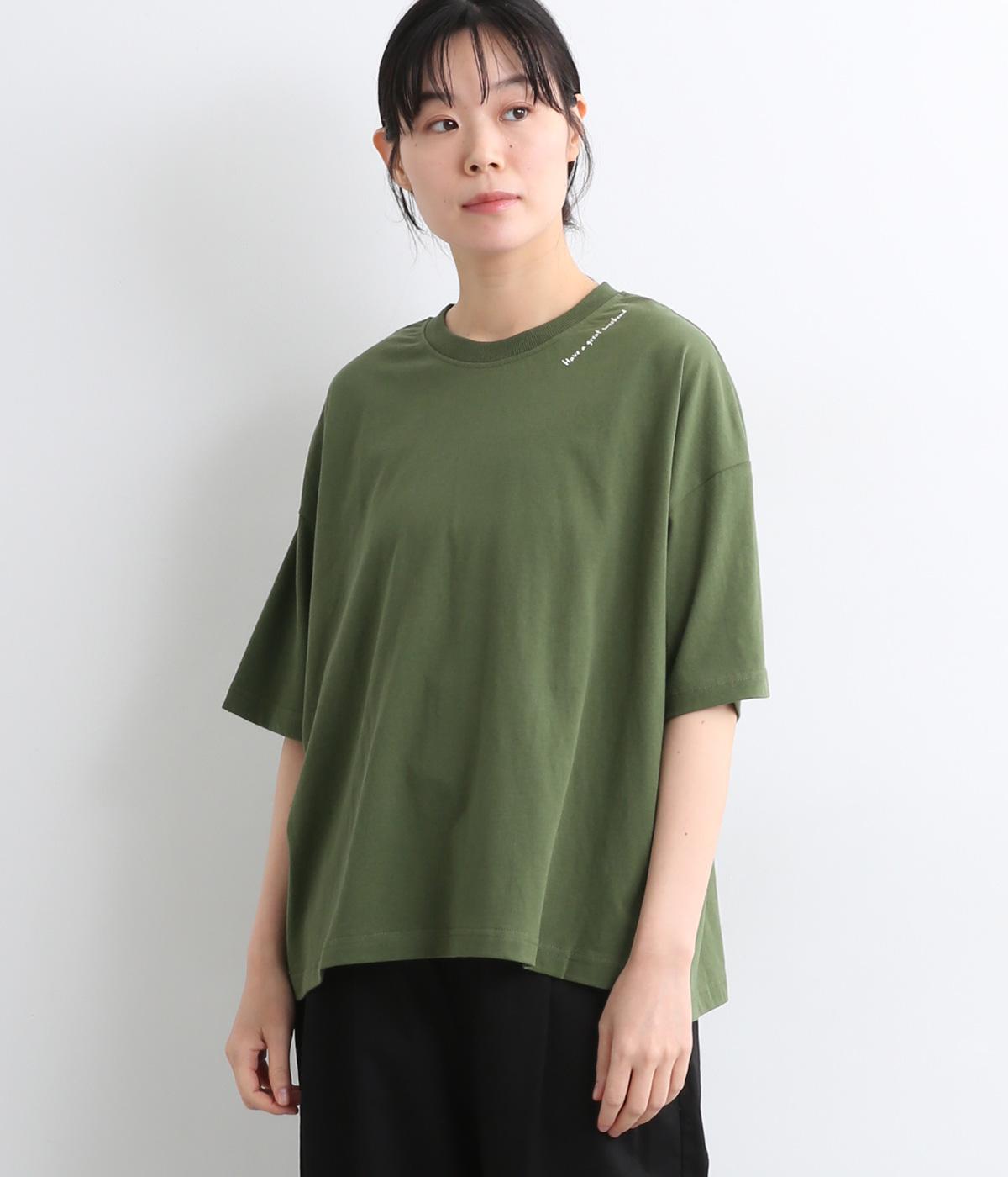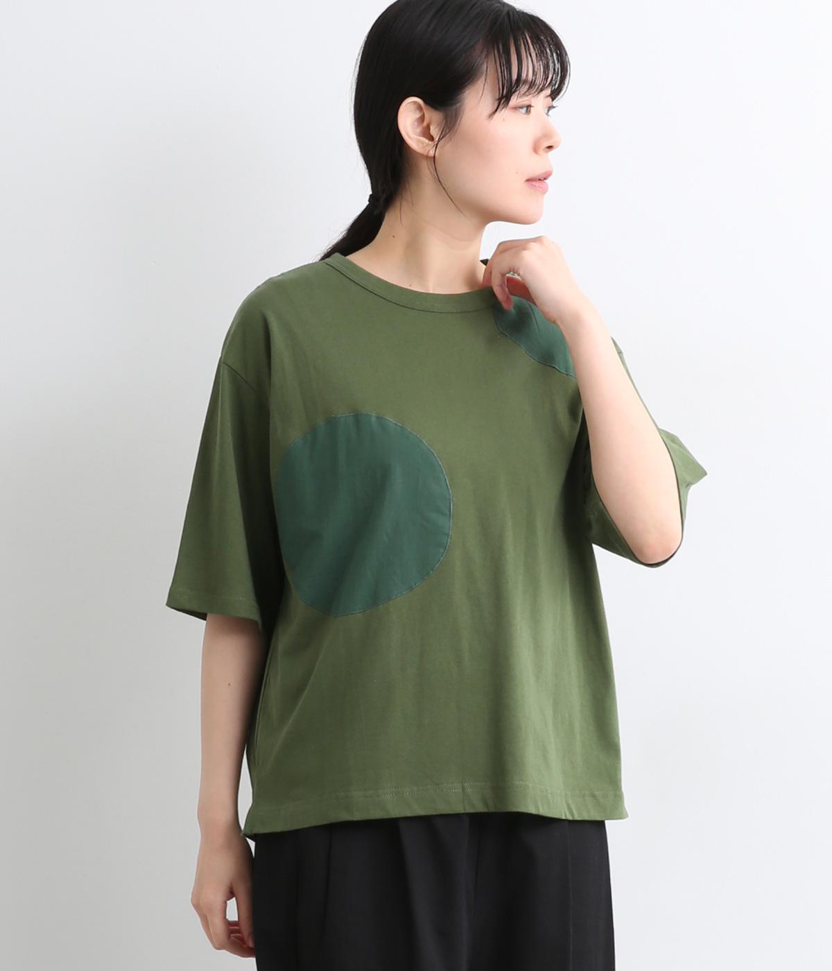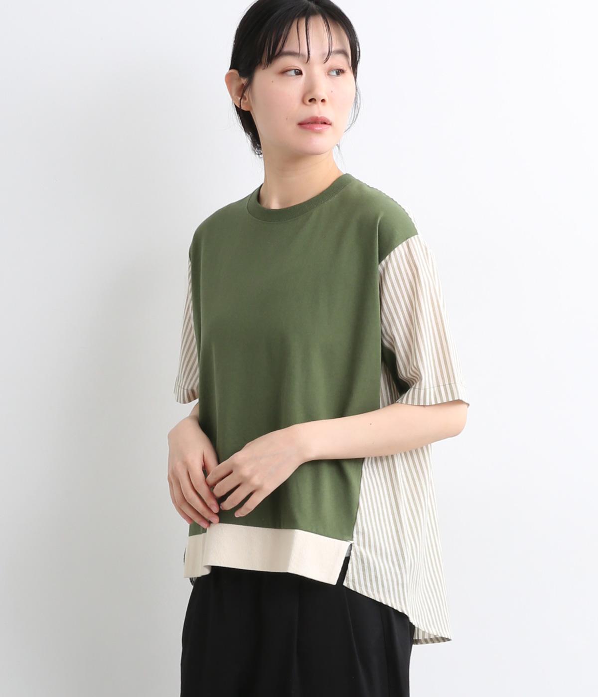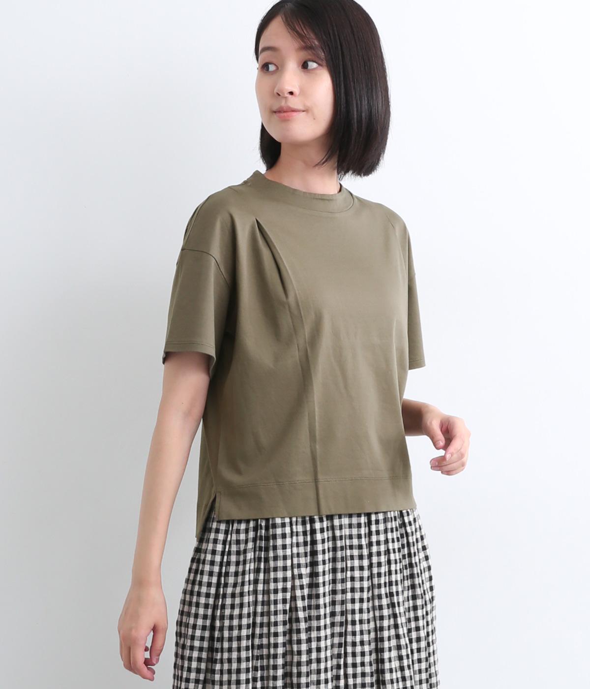 五者混天竺編みドルマン9分袖ニットカーキベージュ