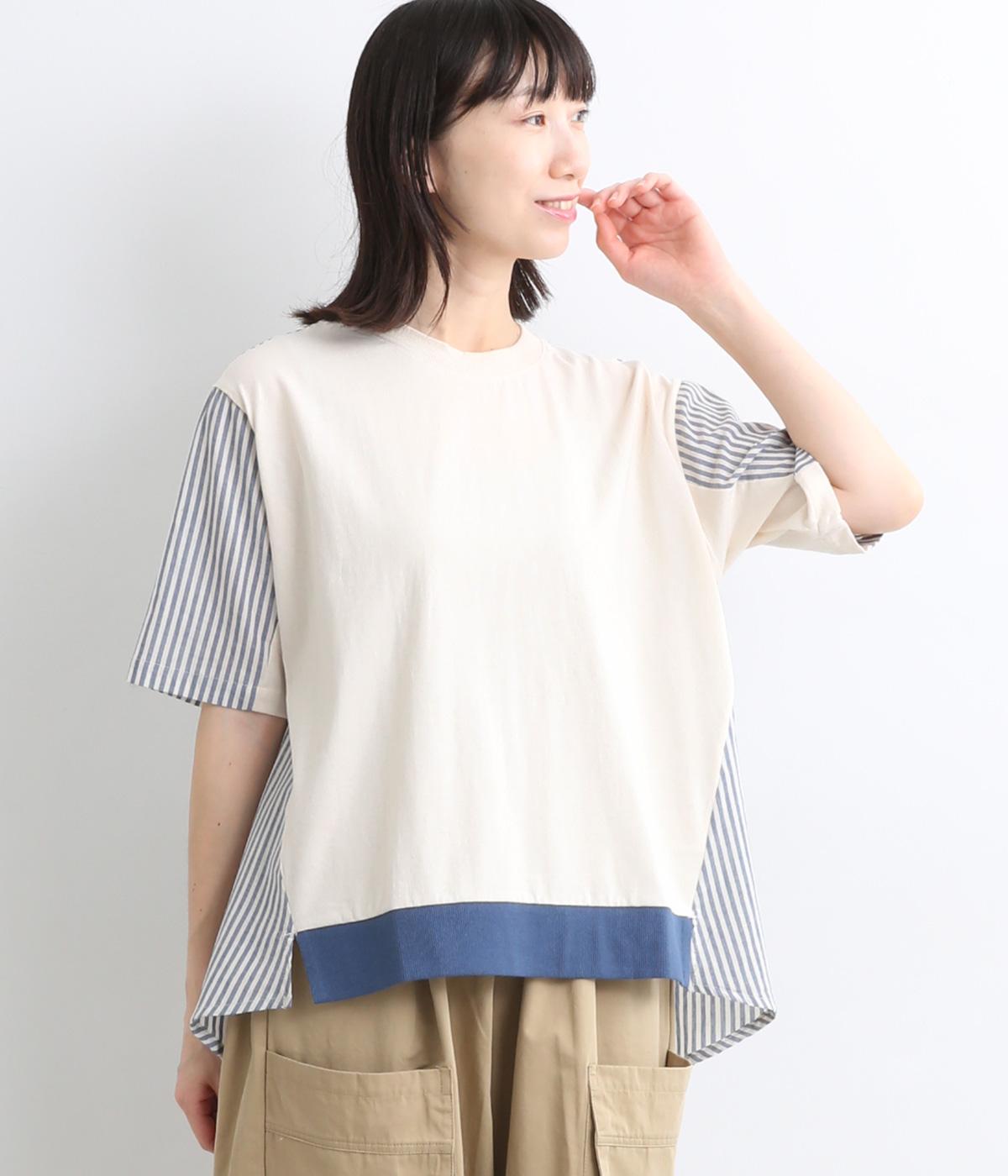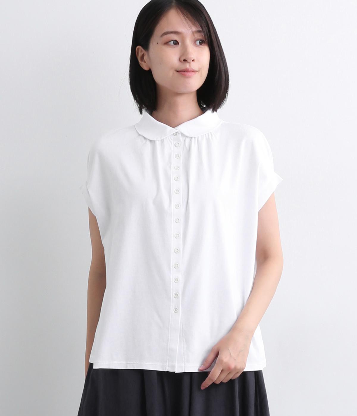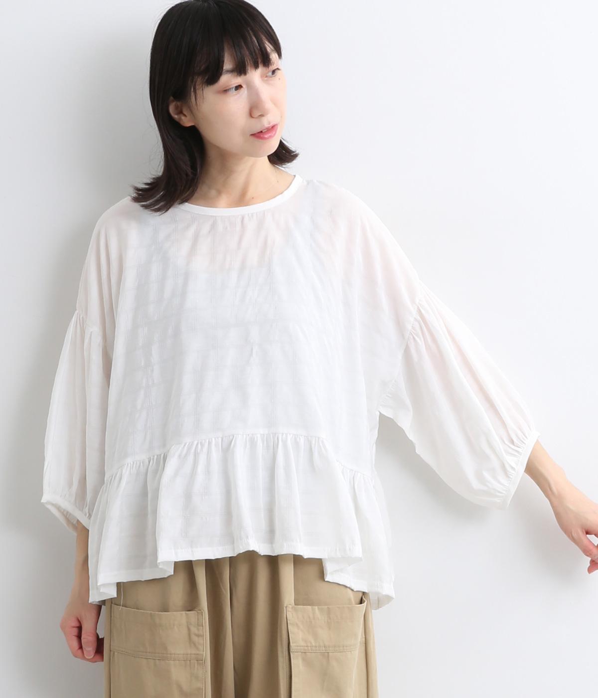 コットン平織日本製品染前後2wayティアード長袖ブラウスオフシロ